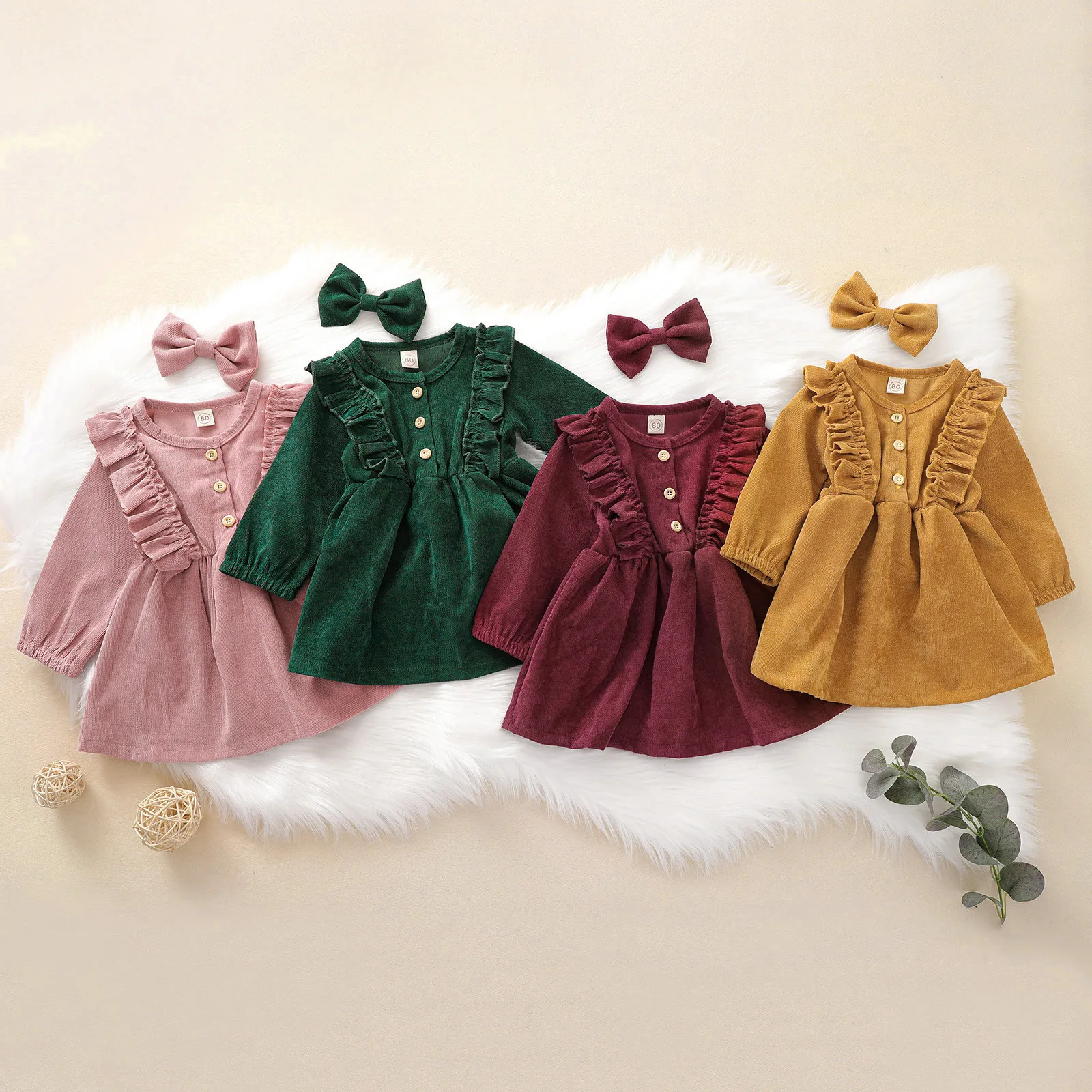 Однотонное платье с рюшами для маленьких девочек, платье принцессы + Комплект резинок для волос