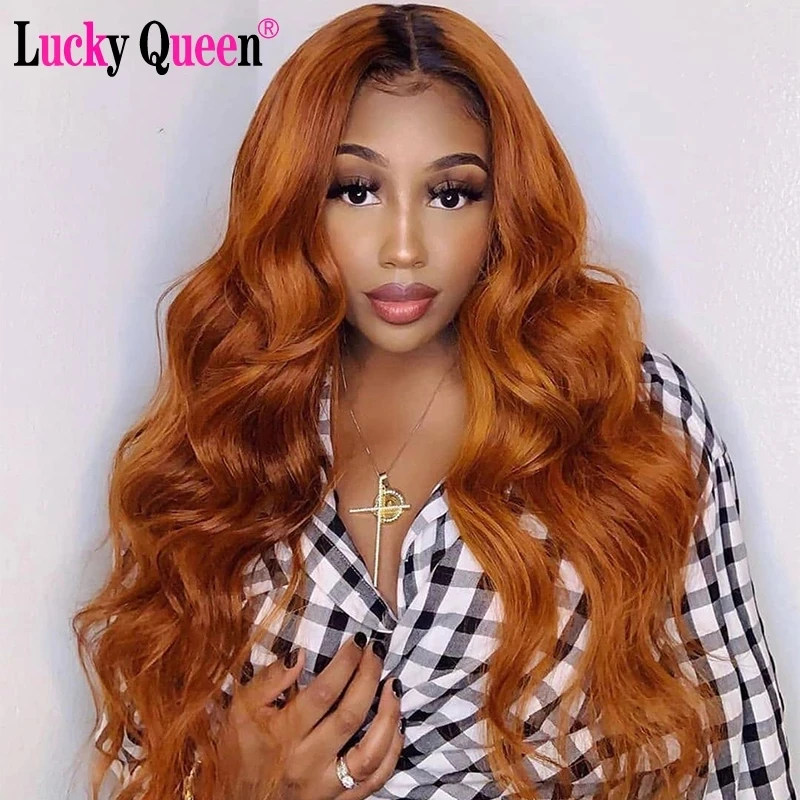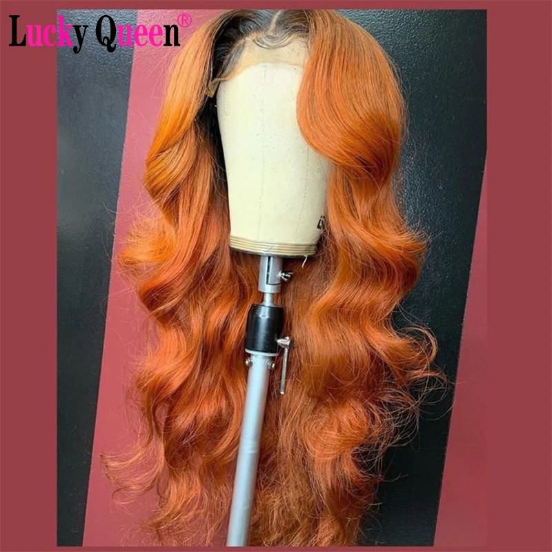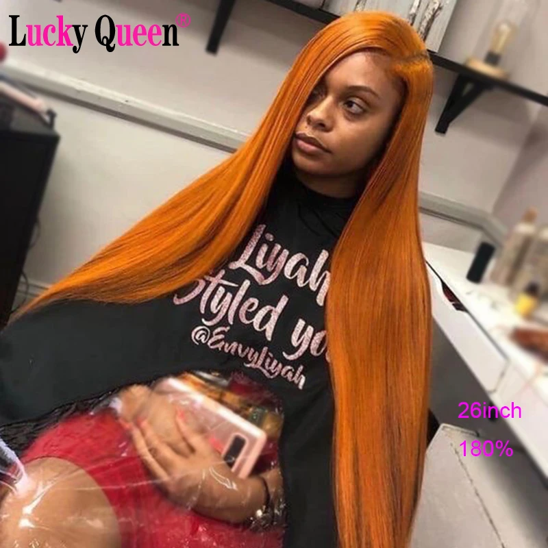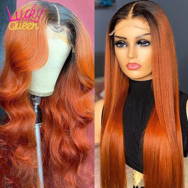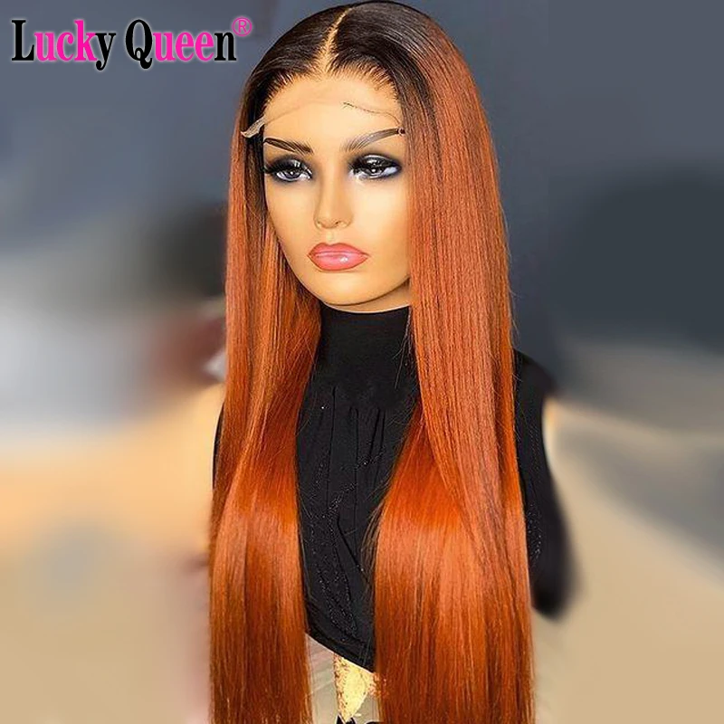 Парики из перуанских прямых волос Lucky Queen, парики на сетке 4 х4, с эффектом омбре, из человеческих волос оранжевого цвета, предварительно выщипанные для чернокожих женщин