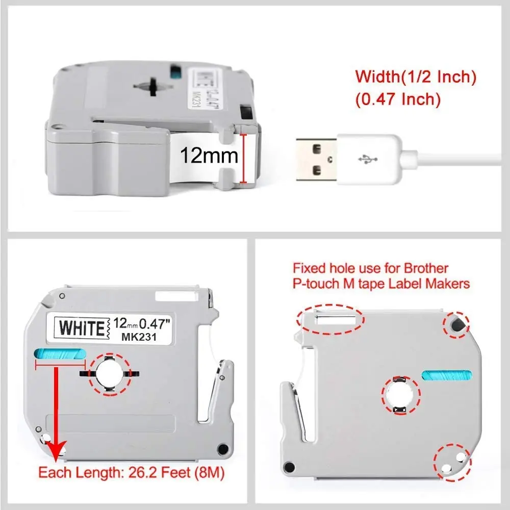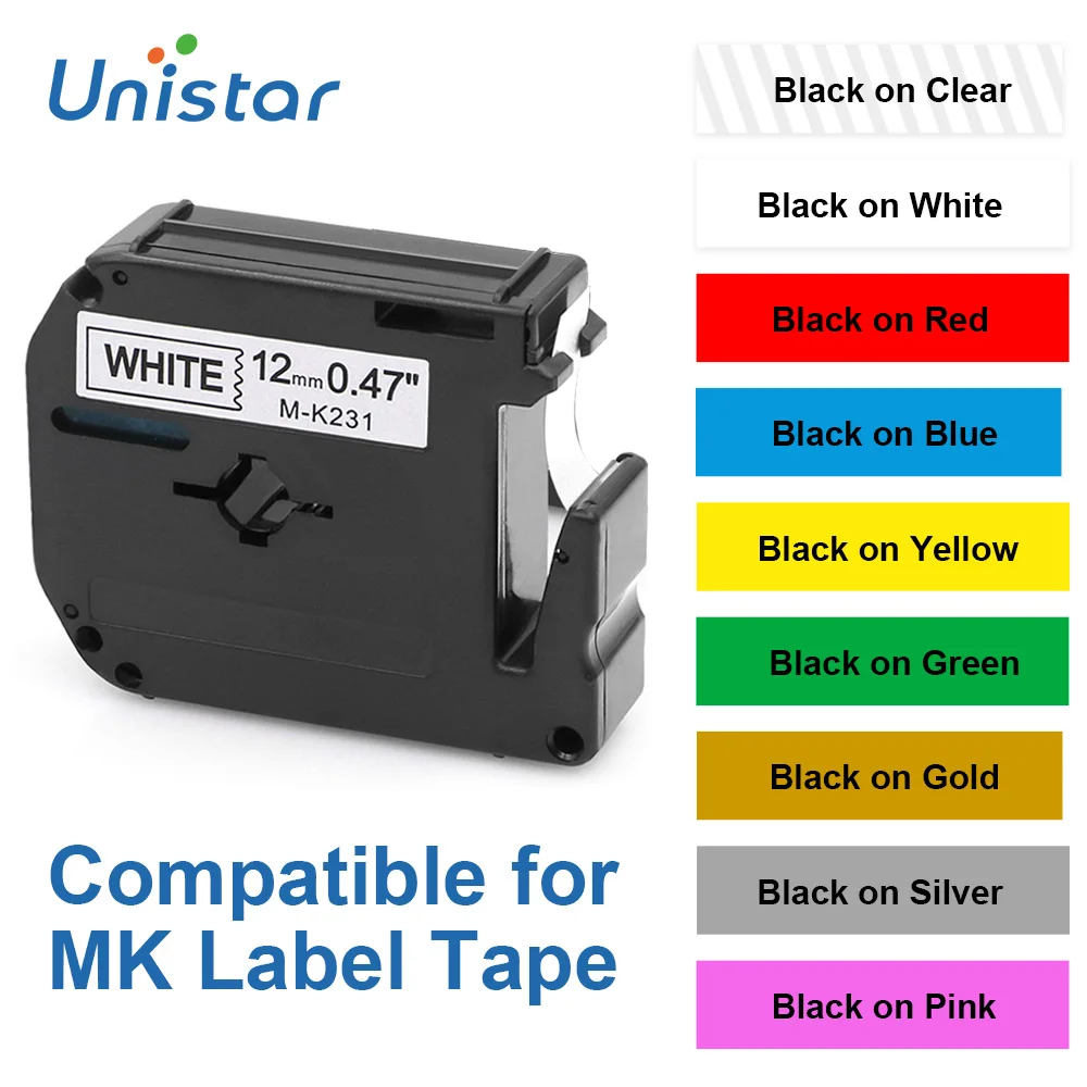 Unistar 221 231 ярлык, совместимый с лентами Brother mk231, пластиковая лента черного на белом 12 мм для принтера, ярлыки, ярлыки, зеркальные
