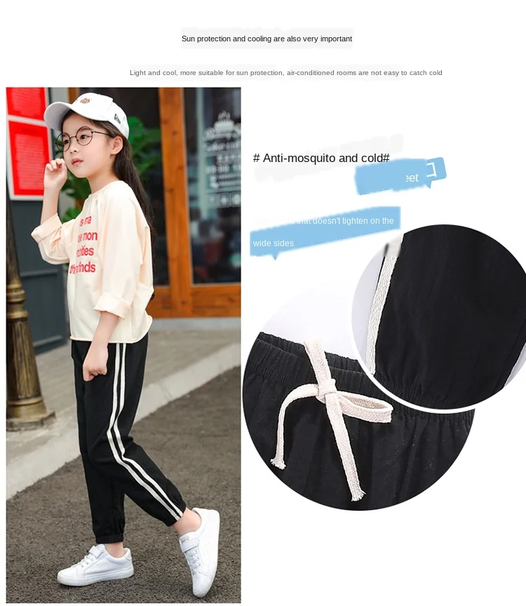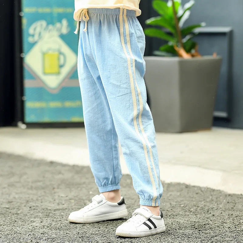 Штаны детские из хлопка и льна, летние дышащие, с защитой от комаров