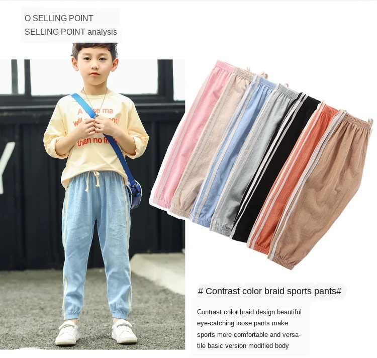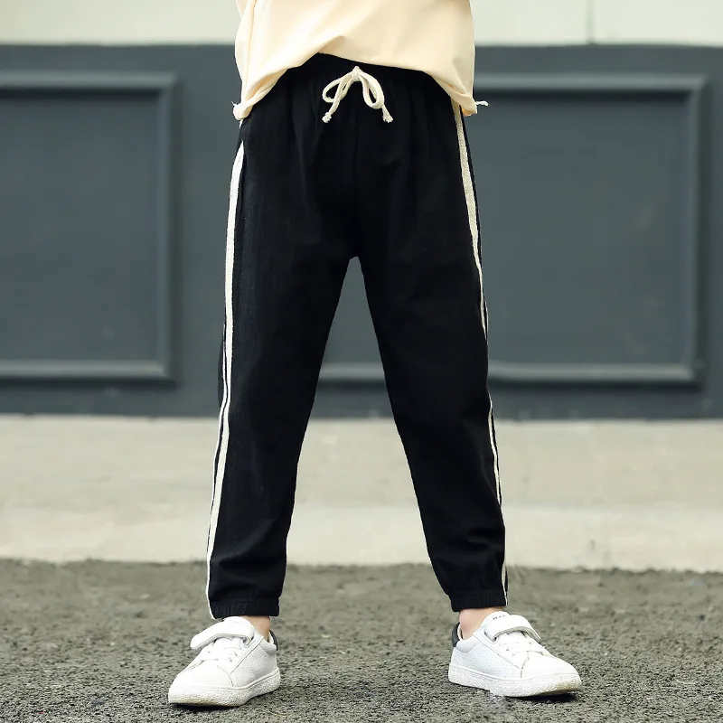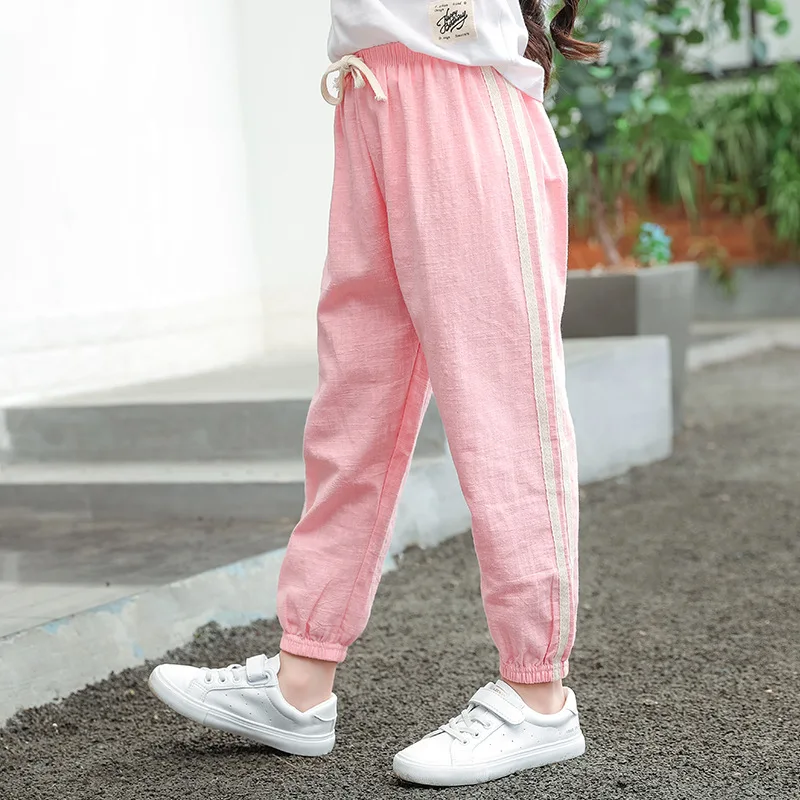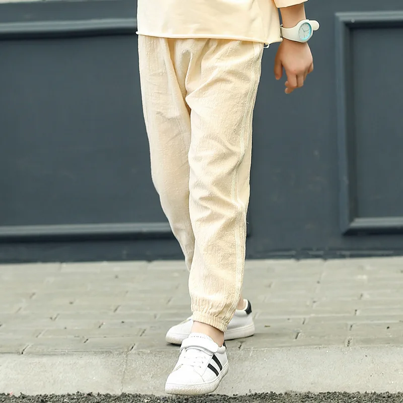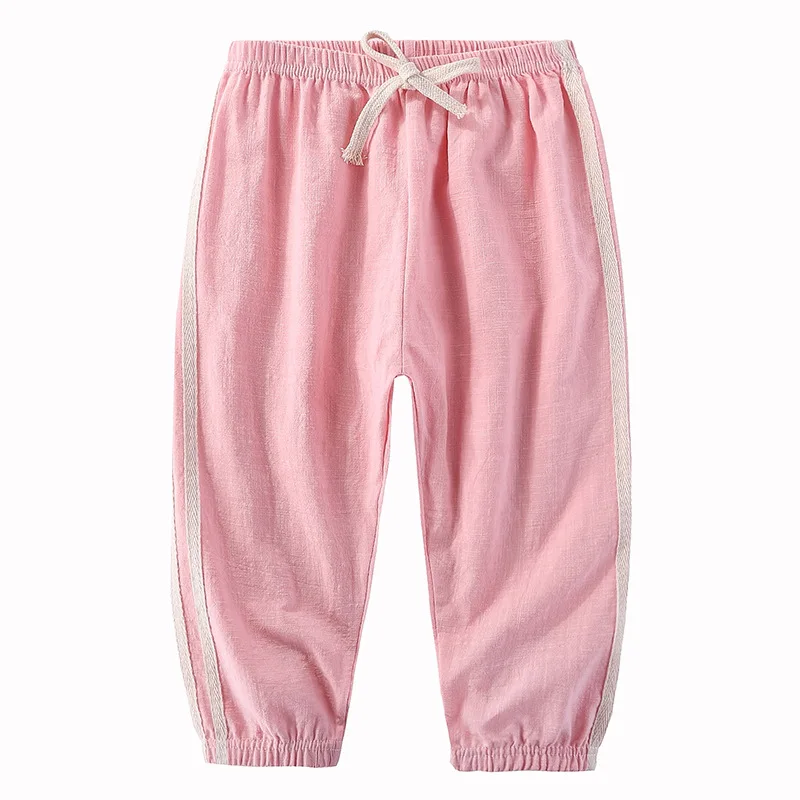 Хлопковые льняные брюки с москитной сеткой для малышей, летние однотонные спортивные брюки для мальчиков и девочек, детская одежда для девочек, брюки s160