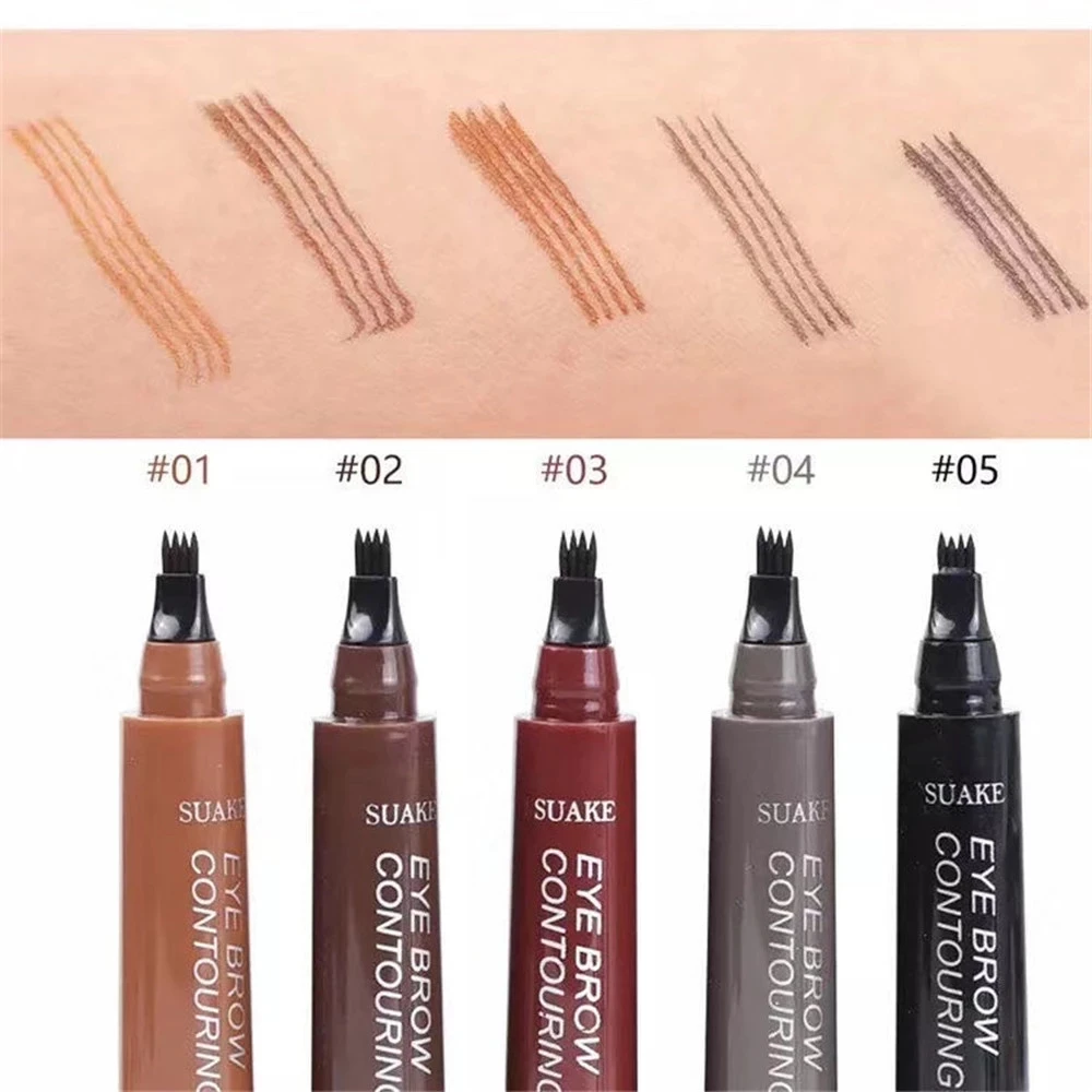 Жидкая татуировка для бровей с 4 головками, 3D микроблейдинг, ручка для бровей, коричневая, черная, водостойкая, бриллиантовая, долговечная