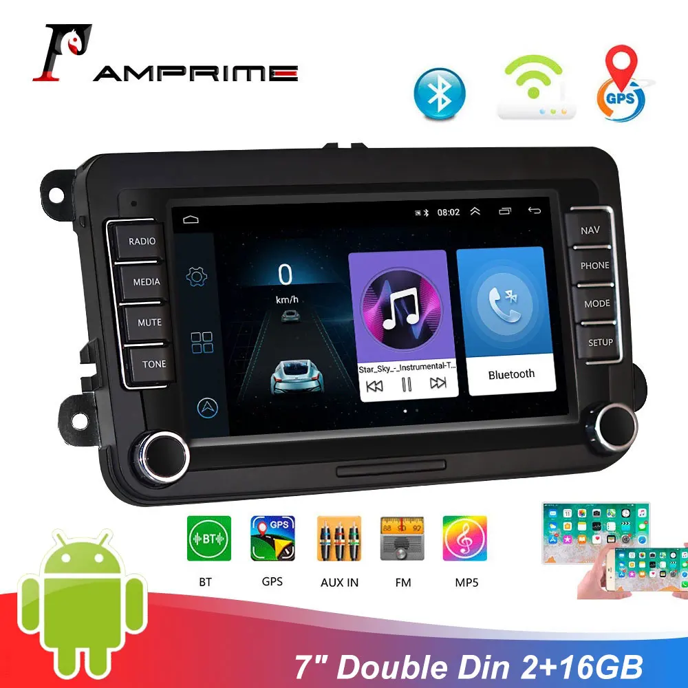 Мультимедийная система AMPrime MP5, 7-дюймовый экран, 2 Гб ОЗУ, 16 Гб ПЗУ, Android, Wi-Fi, GPS, для VWVolkswagenGolfPassatb7b6SkodaSeatOctaviaPolo