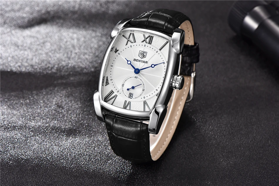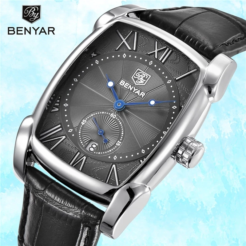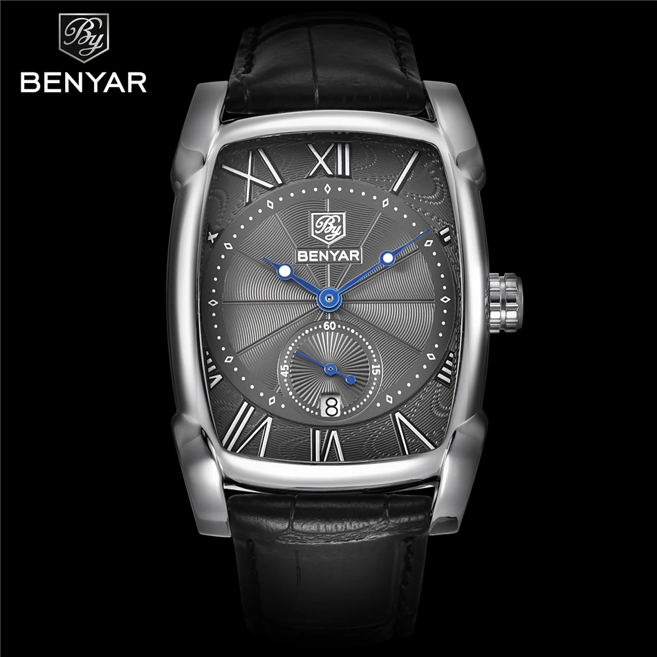 BENYAR мужские часы модные кварцевые кожаные Наручные часы Лидирующ...