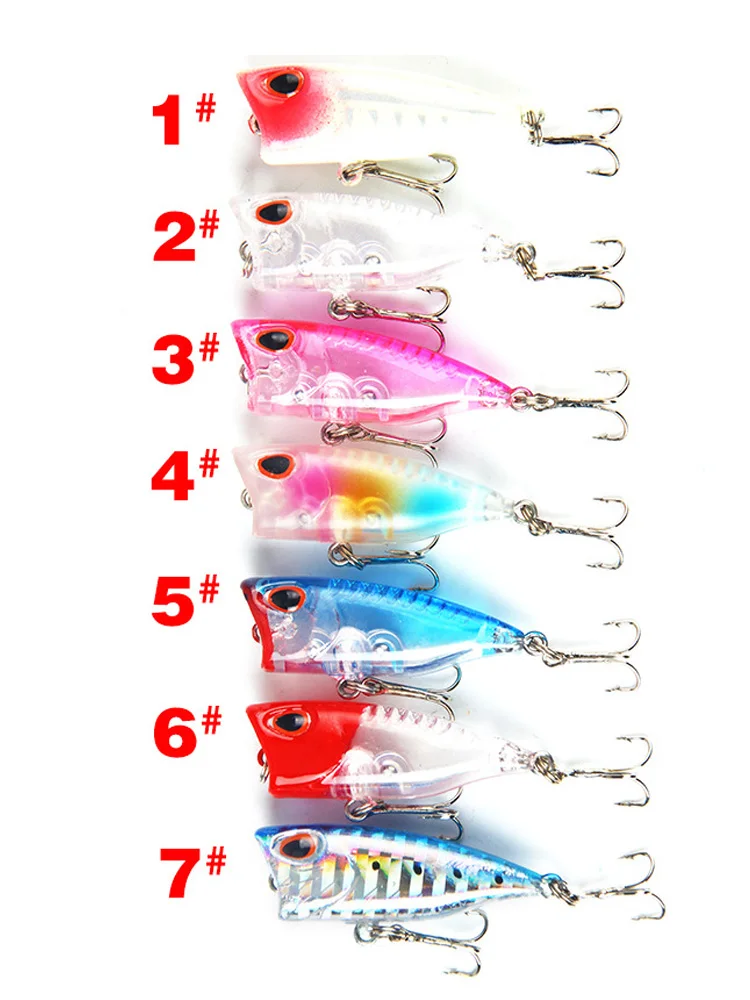 Тип приманки: Поппер для рыбалки наживкаДлина: 4 смВес: 3,3 гГлубина погружения: TopwaterМатериал: Сплав/пластикЦвет: 7 различных цветовКачественный крючок: сильный тройной крючокТип: 1 # -7 #Посылка: 1 * рыболовная приманка