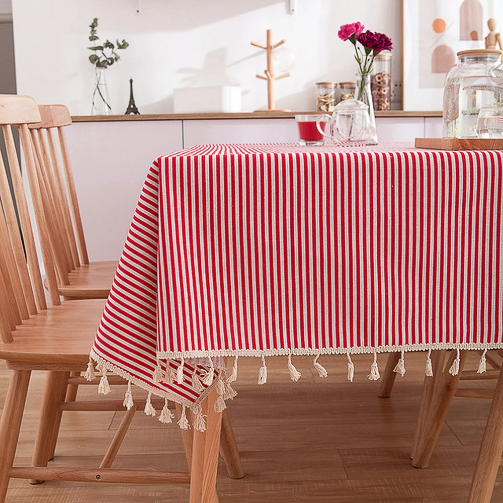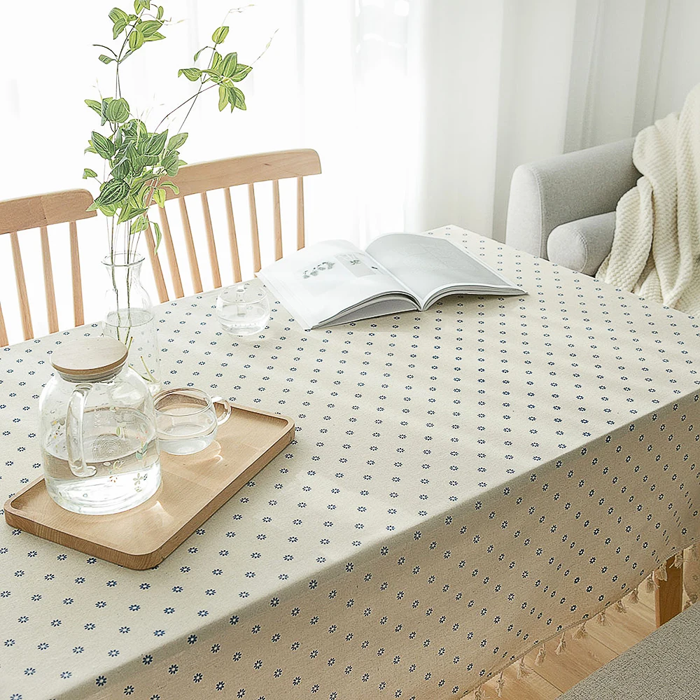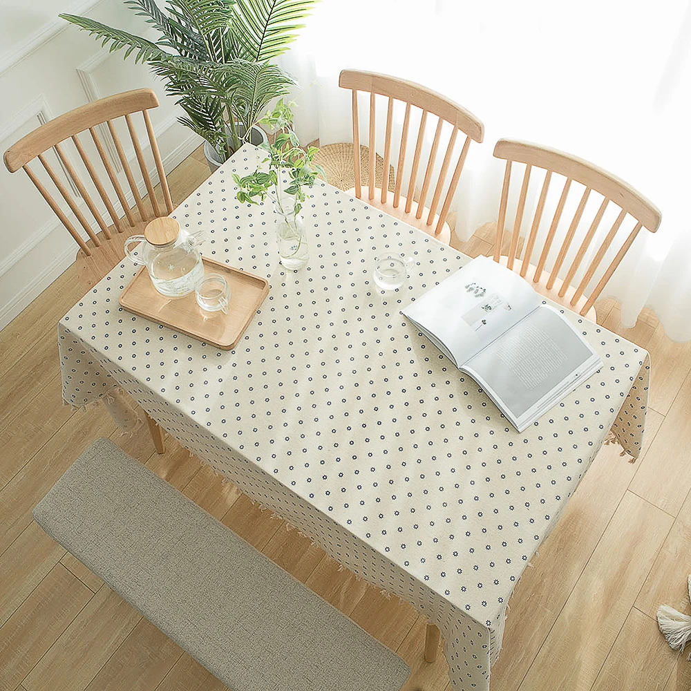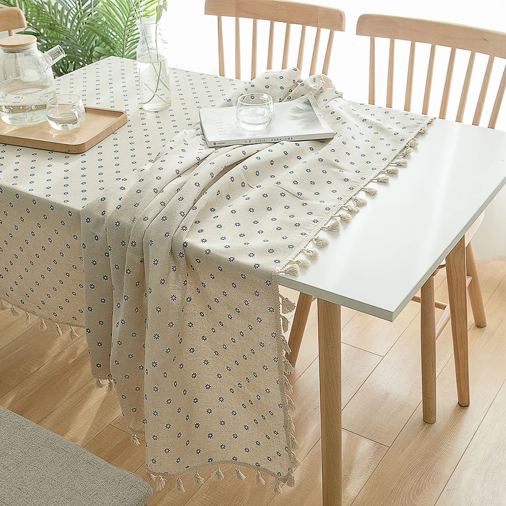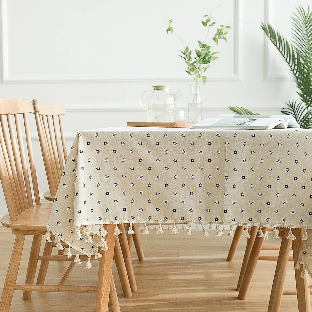 Прямоугольная льняная скатерть в пасторальном стиле, хлопковая ткань с принтом маргариток, для дома, кухни, столовой, скатерти с орнаментом