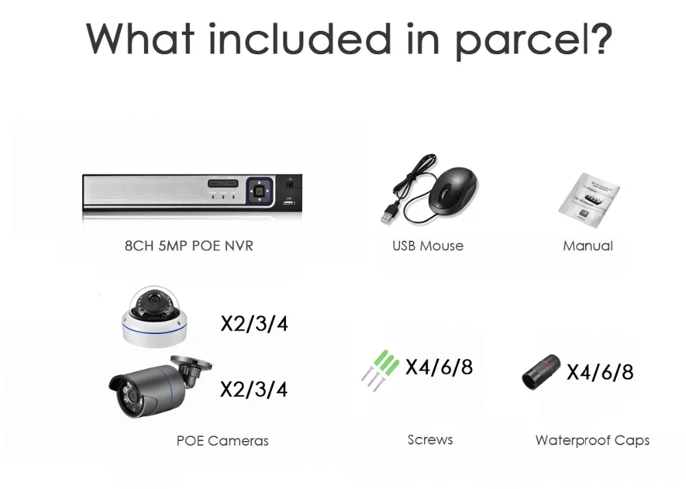 Страна: DK Color: 8CH NVR and 4Cameras Build-in HDD: 1T Ships From: China Доставка: DHL 11.01.2022