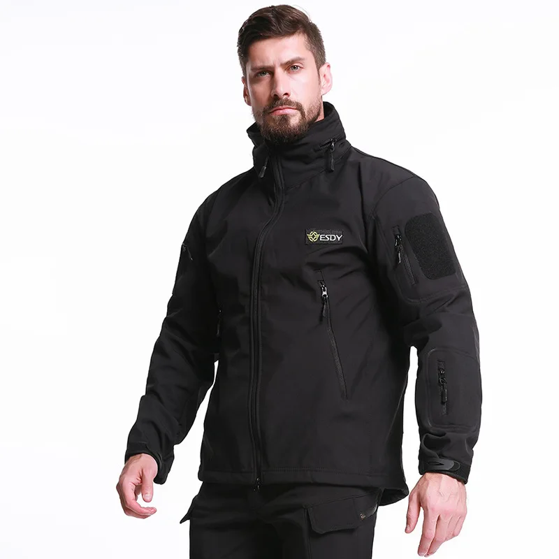 Зимние тактические куртки из мягкой кожи акулы, Мужская водонепрони...