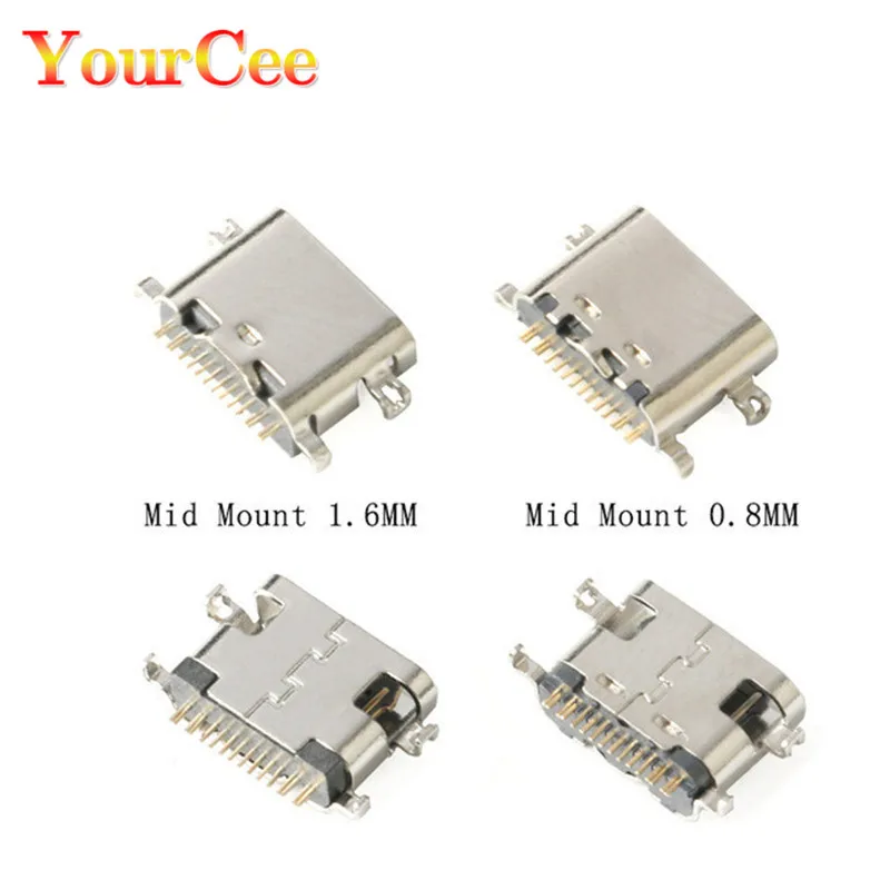 10 шт. USB-3.1 SMT USB Тип разъёма C горизонтальный Mid крепление 16P Женский 1,6 мм через доска 0,8 мм для USB зарядное устройство адаптер DIY типа C
