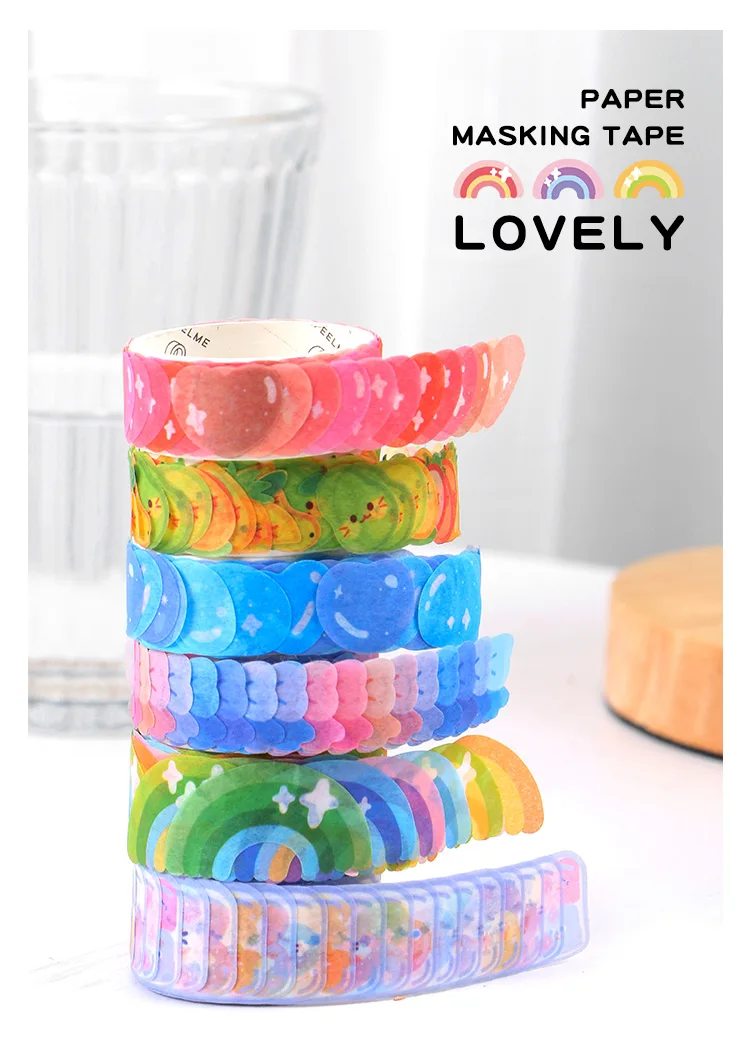100 шт.рулон, декоративная лента в горошек, радуга, фрукты, банты, ...