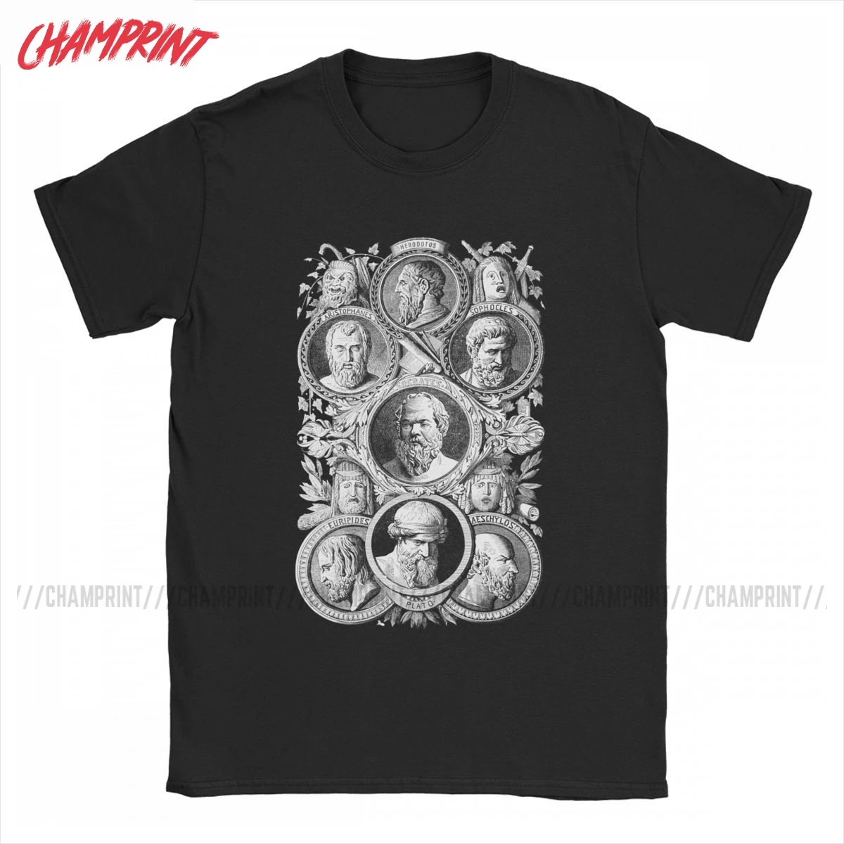 Футболка мужская с круглым вырезом, тенниска из чистого хлопка, с рисунком греческих философов, сократов, Платона, Аристотеля, одежда с короткими рукавами, размера плюс