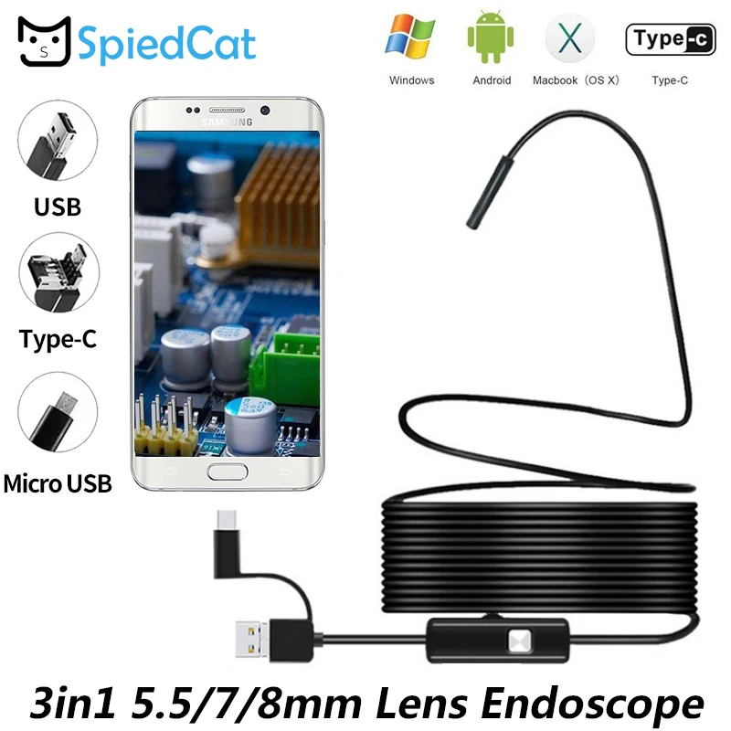 3in1 5,5/iPhone 7 Plus/8 мм мини-объектив 1/2/3.5/5/10 м мягкий Камера Android TypecC/USB Водонепроницаемый эндоскоп бороскоп трубы Камера