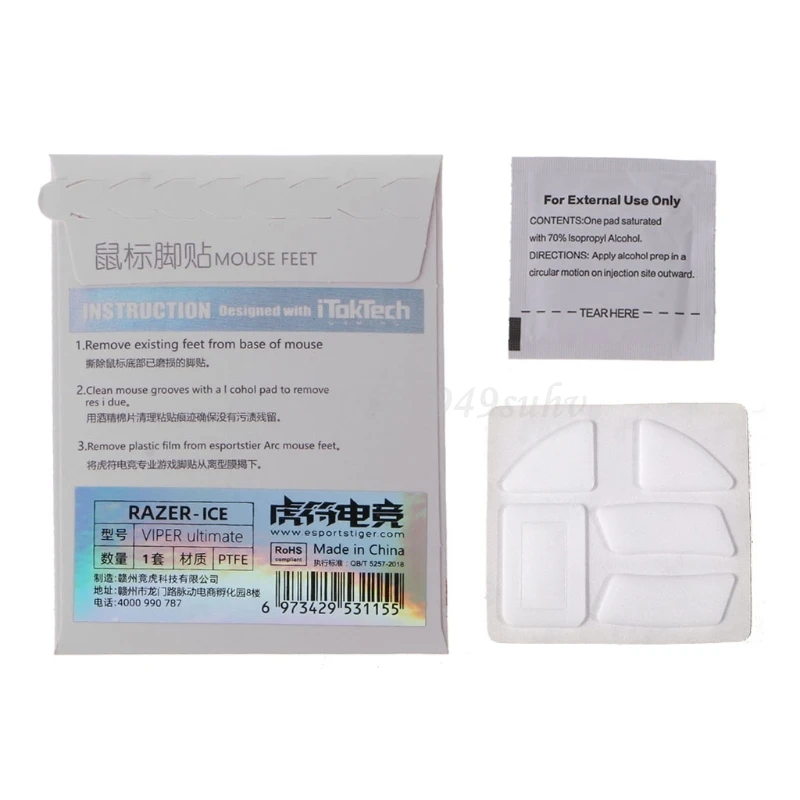 Этот продукт является сменной ножкой для мыши. После удаления оригинальной наклейки на ножки мыши очистите нижнюю оболочку спиртовым хлопком, который прилагается в упаковке, а затем Наклейте Новые ножки мыши.