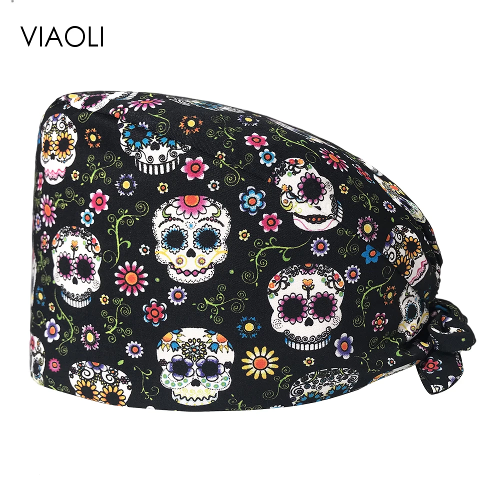Хирургическая шапочка VIAOLI из 100% хлопка с принтом, эластичная ш...