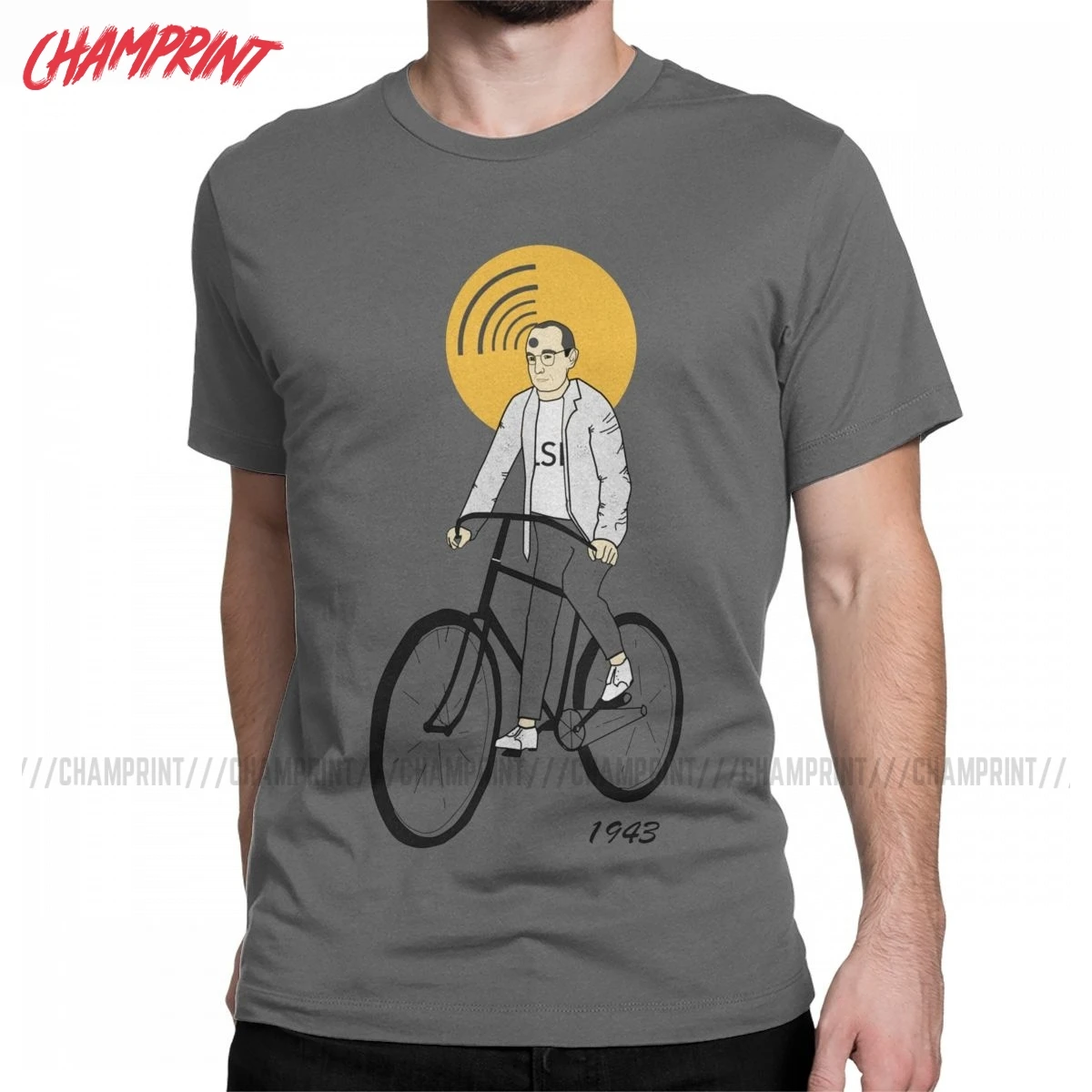 Альберта хофманна ЛСД велосипедный день футболки для мужчин весело натуральный хлопок футболки для девочек с круглым воротником, футболки с коротким рукавом летняя одежда