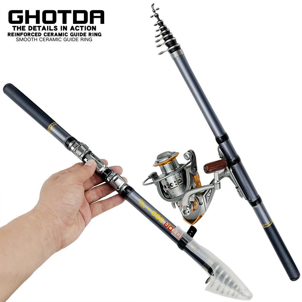 Телескопическая удочка из углеродного волокна, портативное спиннинговое удилище и катушки, многофункциональный набор, 1,8 м, 2,1 м, 2,4 м, 2,7 м, 3,0 м