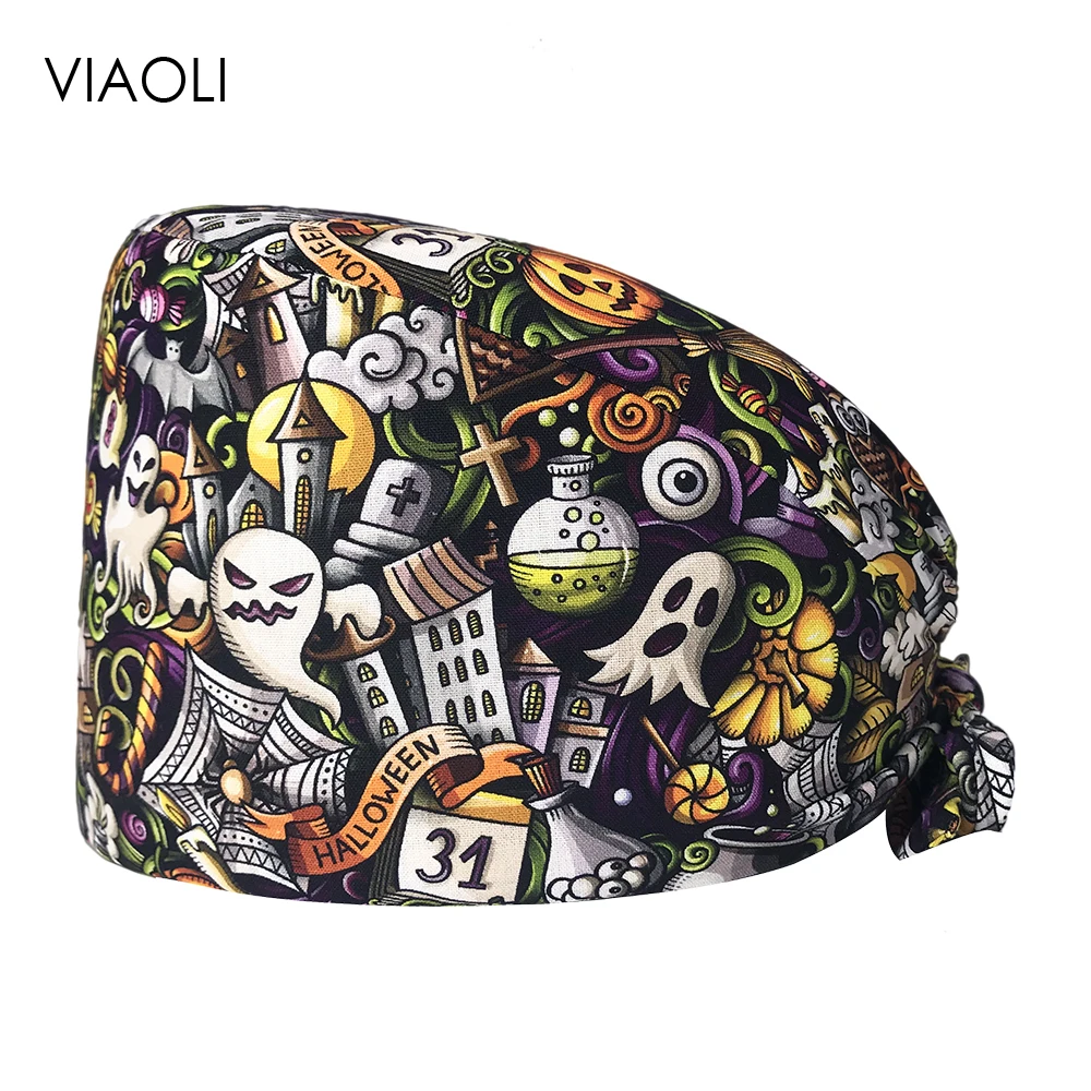 Хлопковая шапка-скрабы с принтом, шапка для оператора лаборатории, ...