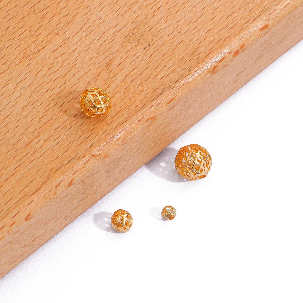 Круглые бусины-разделители из меди, 18 К золота, 5-10 шт., 46810 мм, фурнитура для изготовления ювелирных изделий сделай сам, аксессуары для браслетов 027