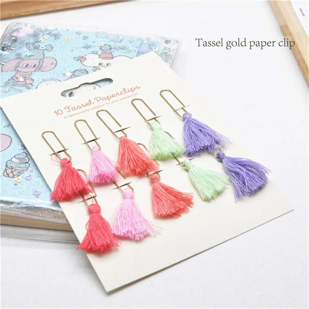 10 шт. разных цветов с кисточками Бумага зажимы Эсколар закладки фотографий Памятка по продаже билетов письмо зажим для бумаг школы канцелярский подарок