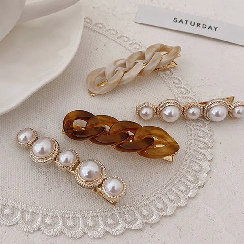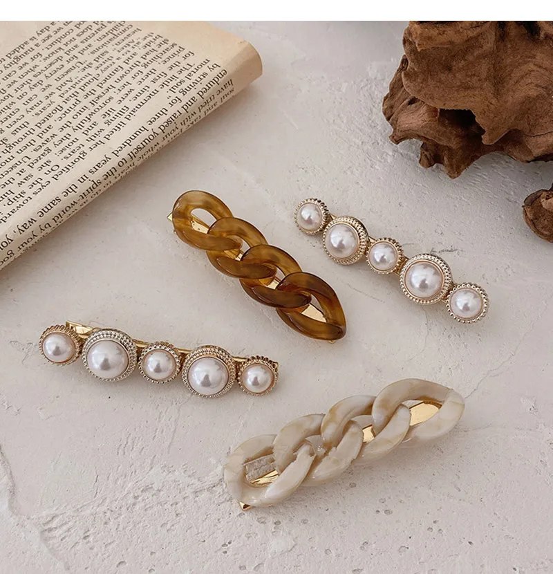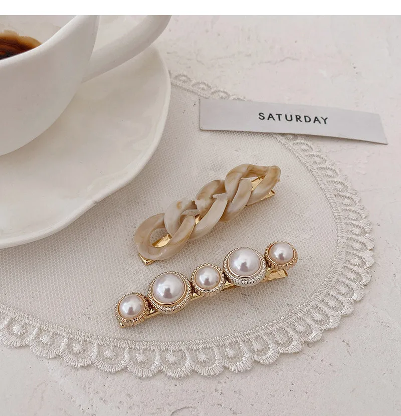 Заколки для волос с жемчужинами и цепочками женские, модные шпильки в Корейском стиле, аксессуары для волос, 2 шт.