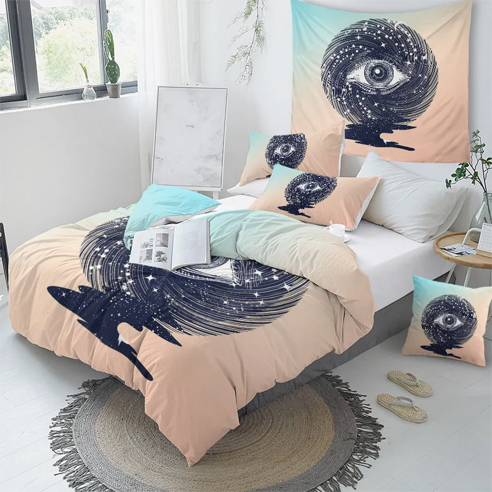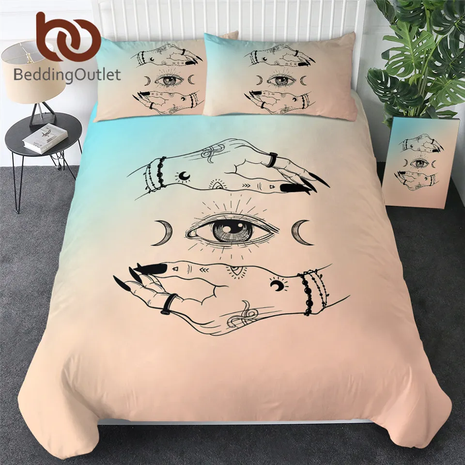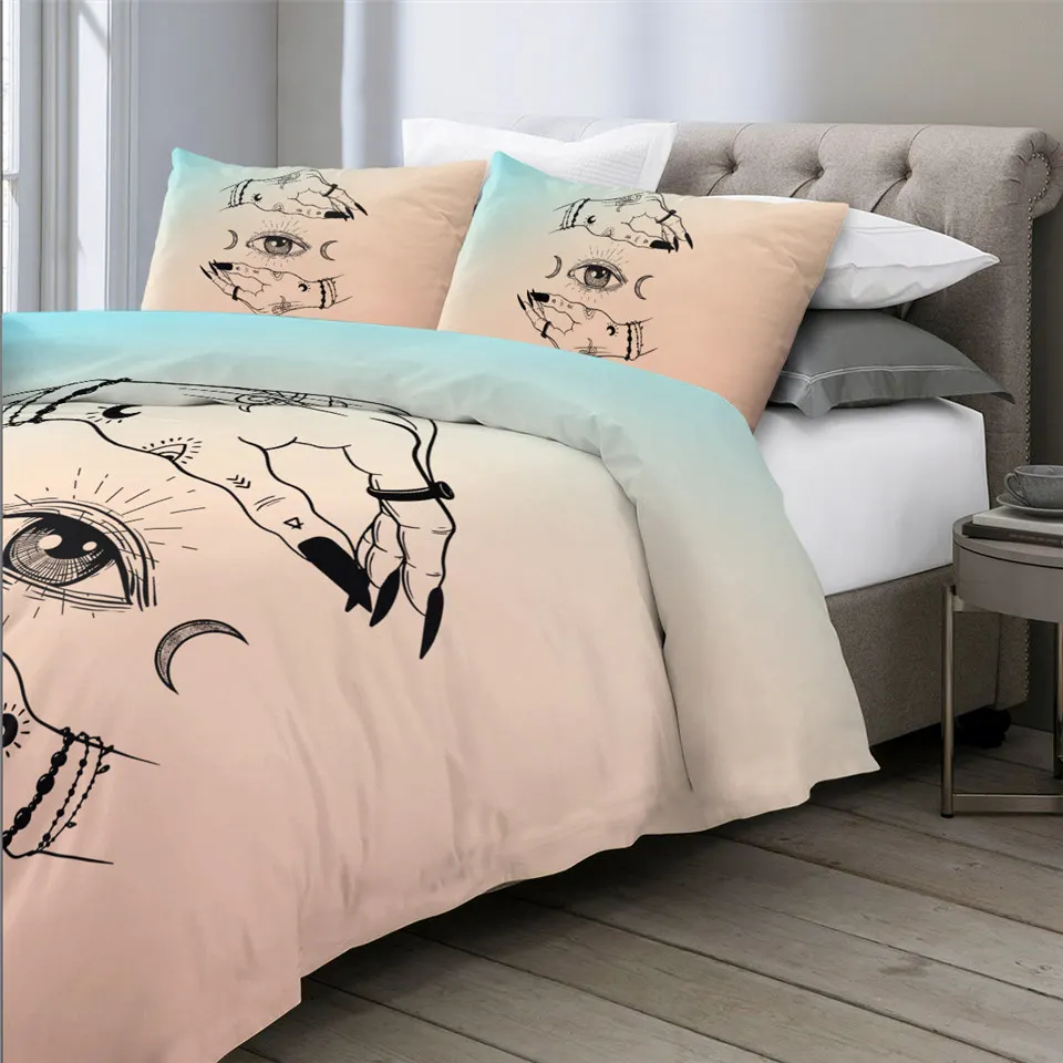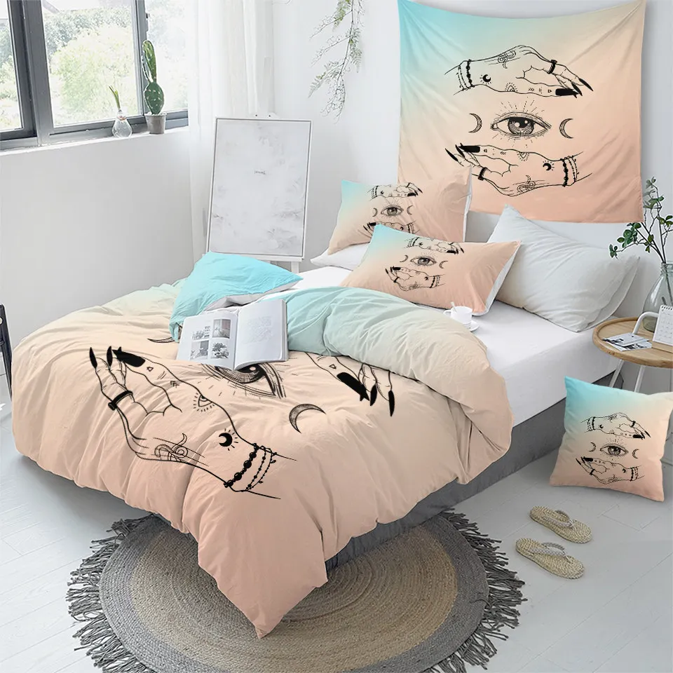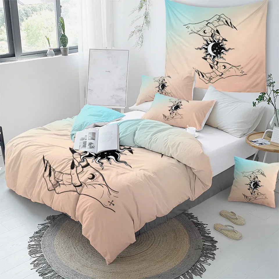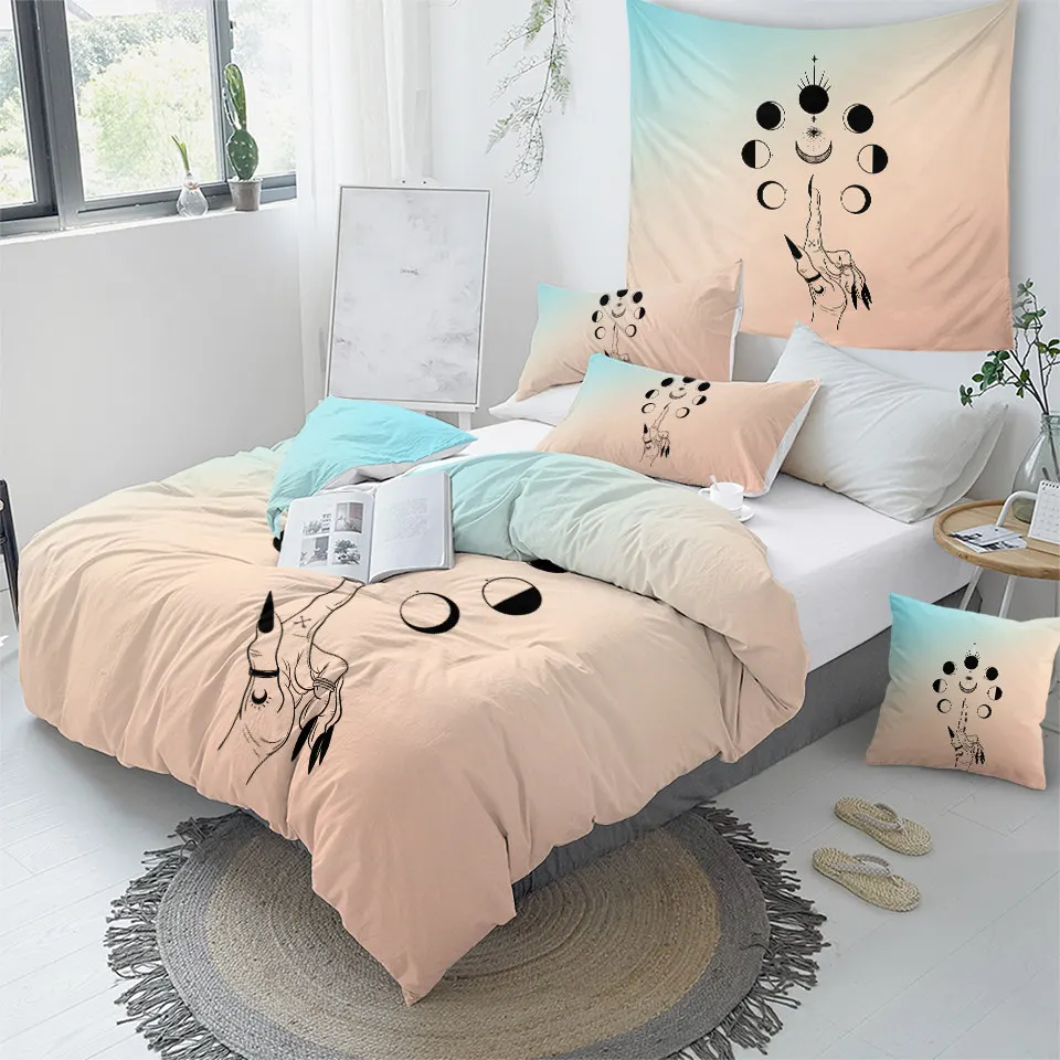 Постельные принадлежности на выход, Комплект постельного белья ведьмы для рук, набор постельного белья ведьмы, пододеяльник с графической луной, покрывало в готическом стиле, Комплект постельного белья в стиле бохо, розовое покрывало, 3 предмета