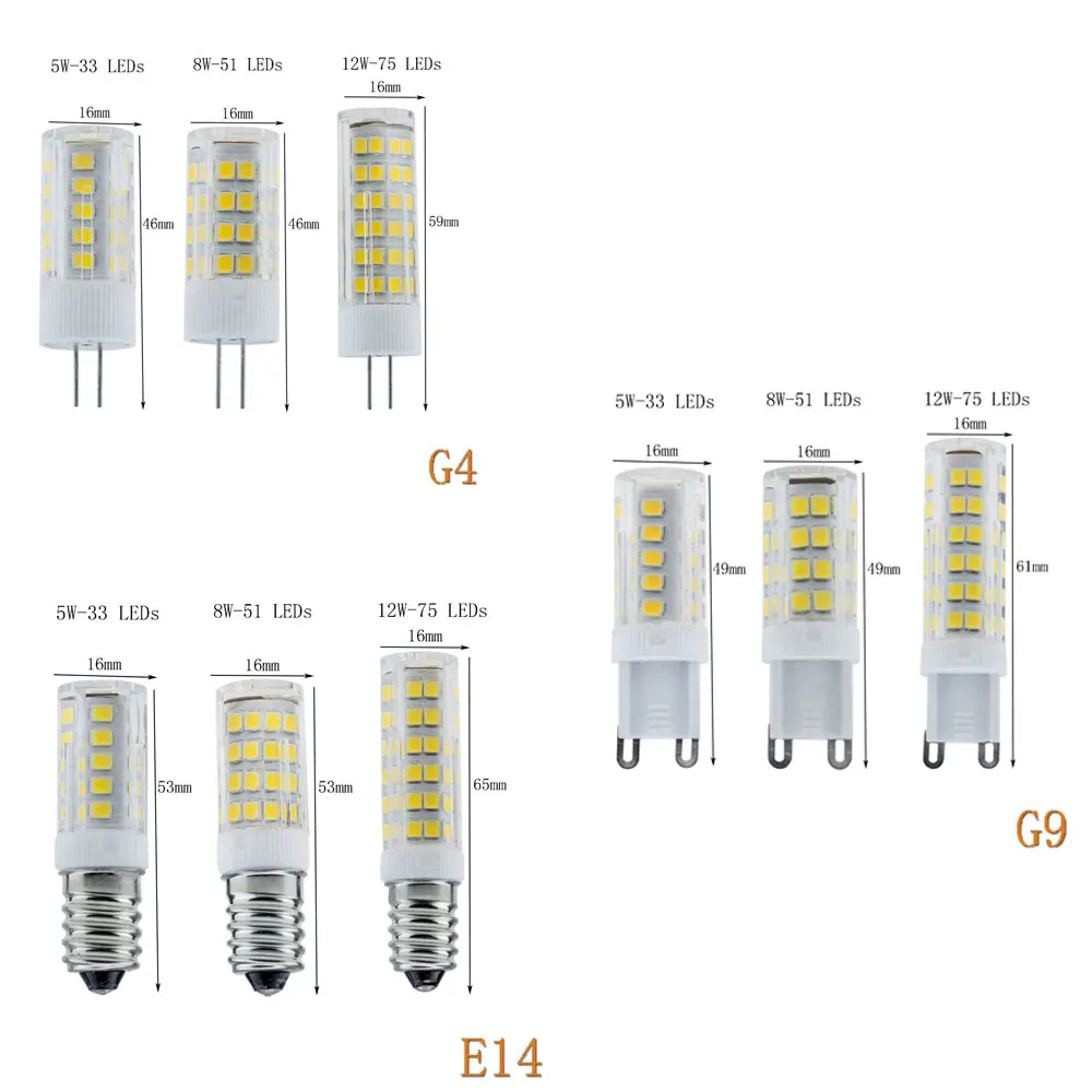 Высококачественная Светодиодная лампа G9 5 Вт 8 Вт 12 Вт G4 E14 Керамика светодиодная кукурузная Лампа Капсула Кристалл Мини-люстра ламп