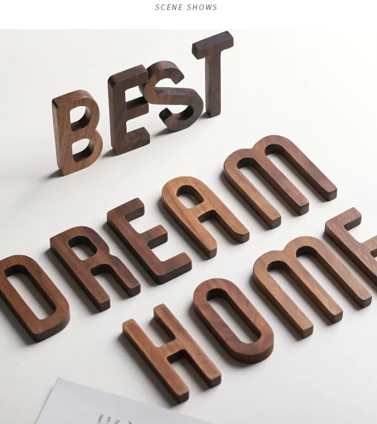 Декоративные буквы из черного ореха в скандинавском стиле, комбинированные настенные украшения сделай сам, украшение для дома, Деревянный Алфавит