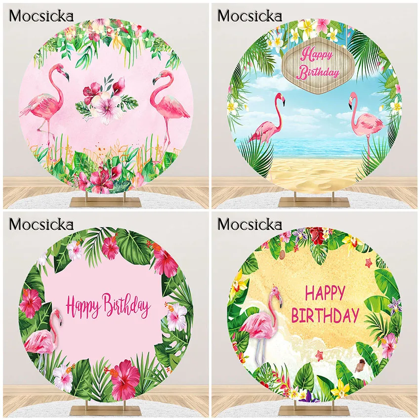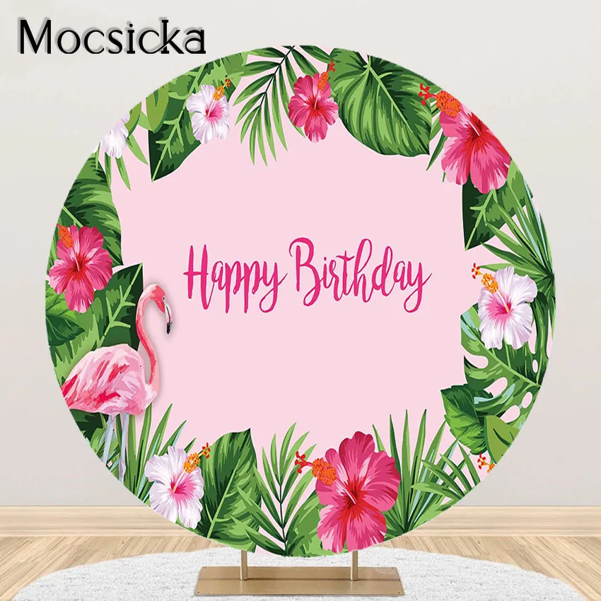 Mocsicka Фламинго вечерние фон лето Алоха Гавайская тропическая день рождения вечевечерние фон для фотосессии круглый Обложка баннер