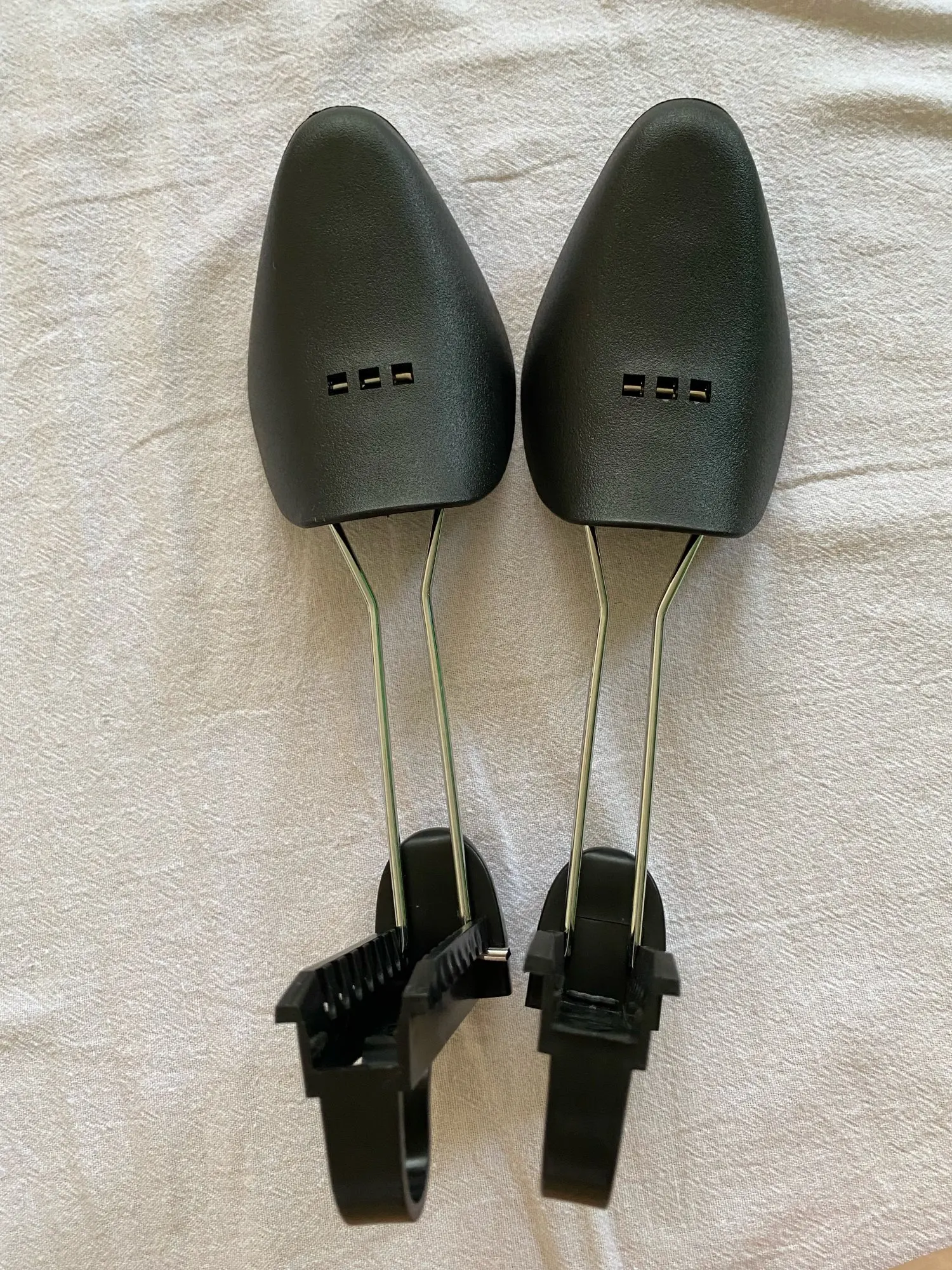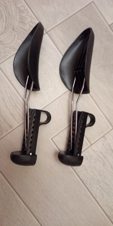 Получила расширители, поставила их на растяжку кроссовок и забыла, что надо написать отзыв. На вид нормальные. На несколько размеров рассчитаны. Надеюсь что растянут мои новые кроссы, которые купила на Али, но оказались чуток маловаты. Пришлось заказать расширитель. Настраиваешь нужный размер, вставляешь в обувь переднюю часть, затем берёшь за кольцо и надавливая вставляешь в пятку до щелчка. Очень просто и удобно пользоваться. Спасибо продавцу и процветания