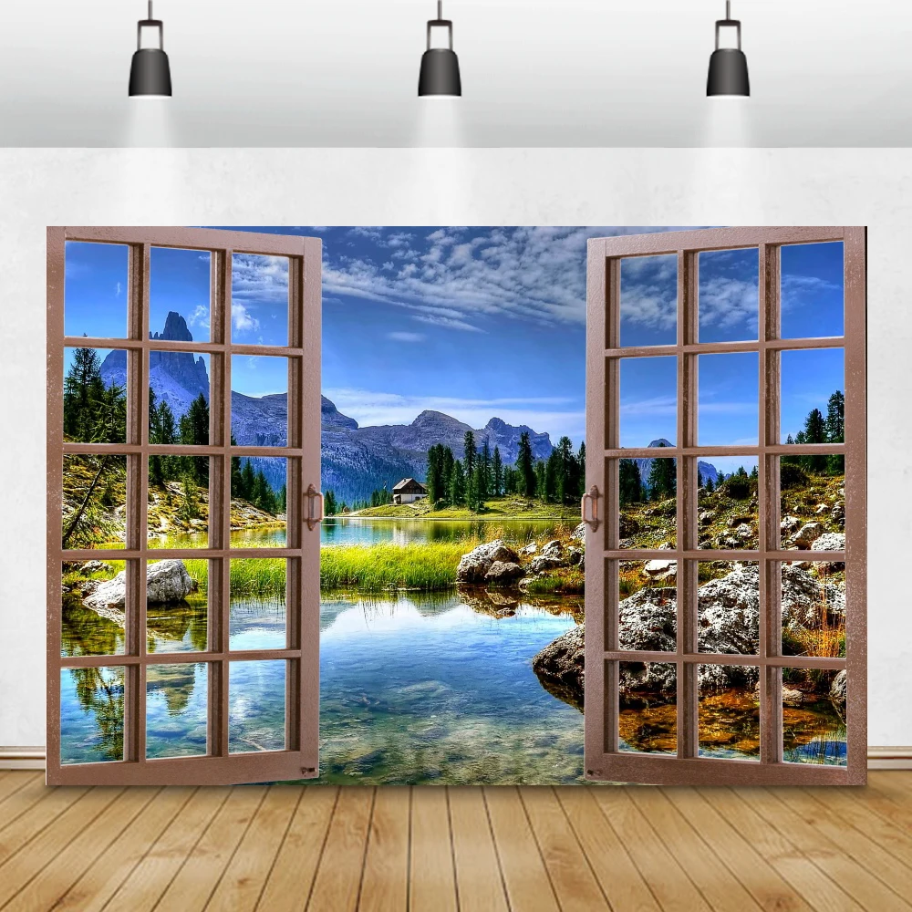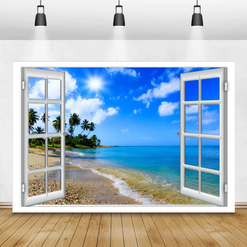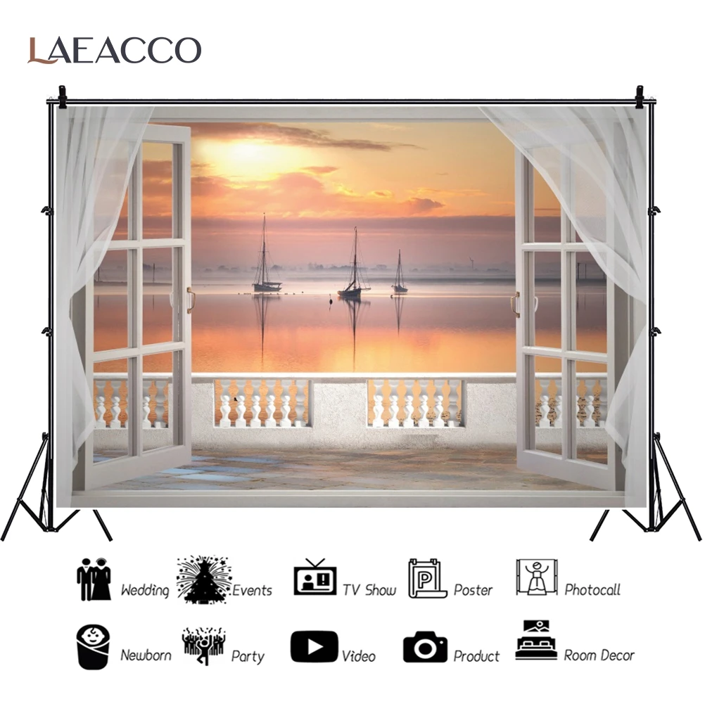 Фон для фотосъемки Laeacco, закат, морское окно, природный пейзаж, занавески, парусник, фотосессия, Фотостудия