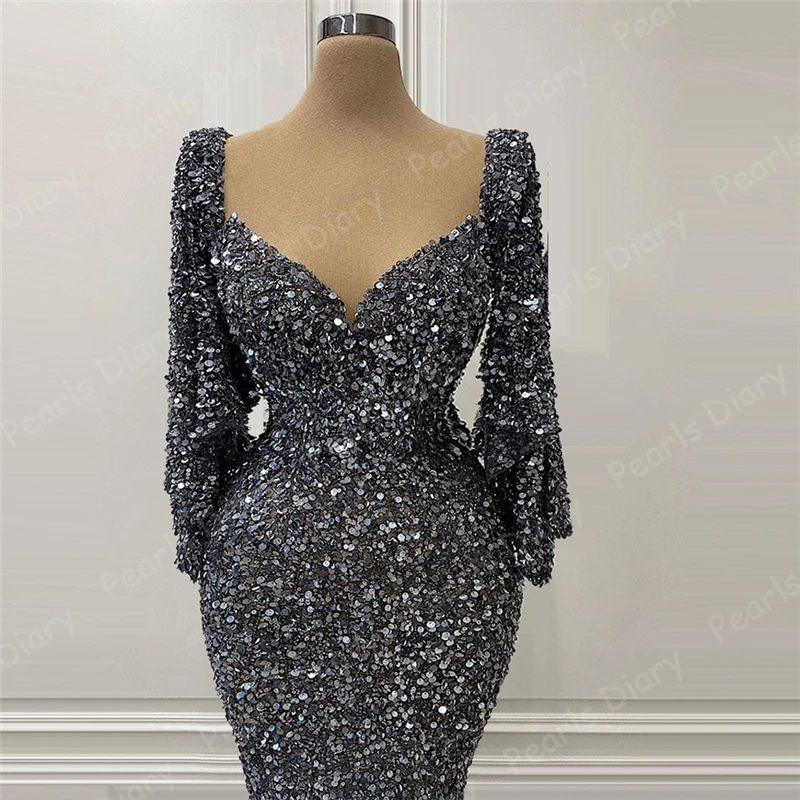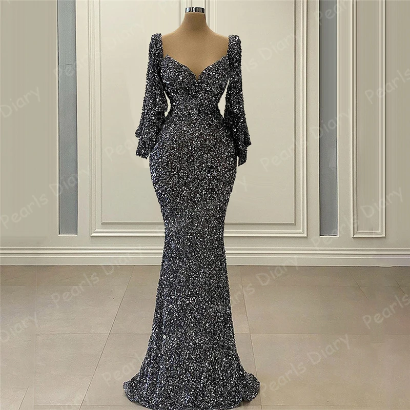 К требованиям заказчика; Сверкающие; Серые шорты с блестками, длинное вечернее платье 2021 Русалка с длинным рукавом Милая в африканском стиле Дубай Для женщин вечерние Формальное вечернее платье Vestido De Festa