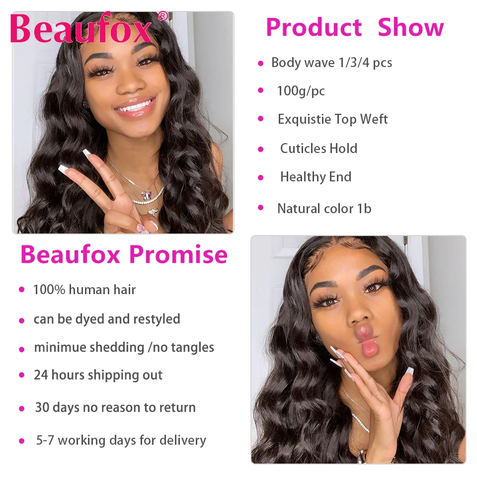 Beaufox волнистые пряди для тела 1/3/4 шт человеческие волосы пряди, малазийские волосы, пряди, Remy волосы для наращивания, натуральный/черный цвет