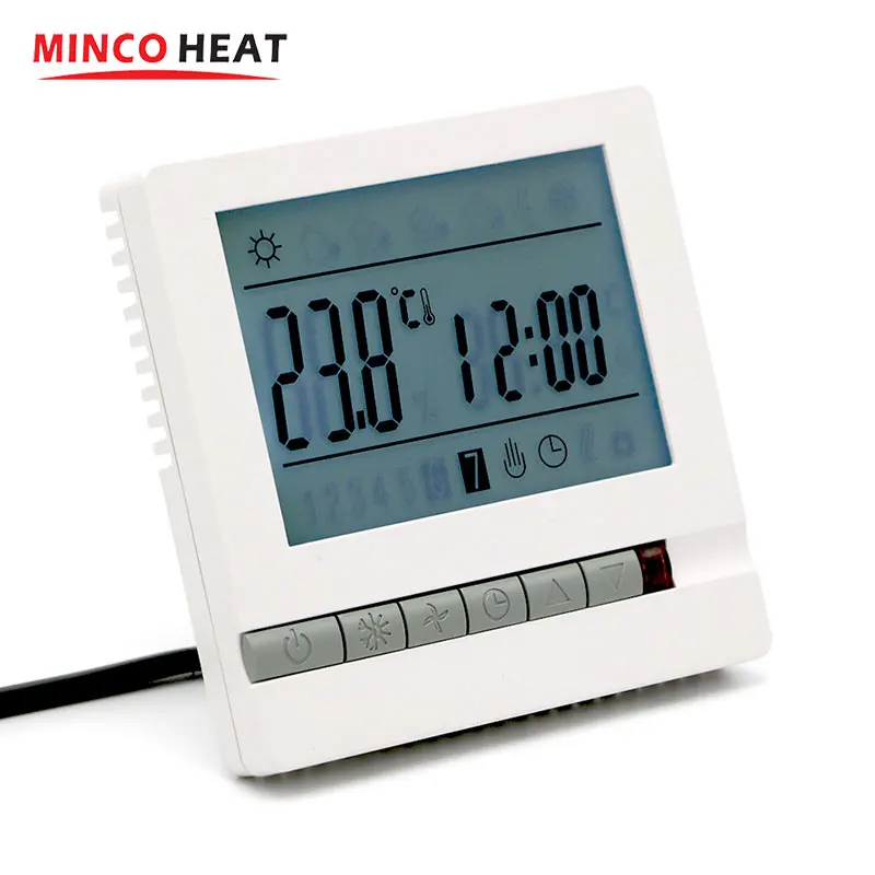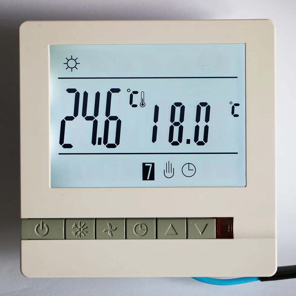 Термостат для система напольного отопления с 7-дневный, 6-период времени с программным управлением. Модели оснащены датчиком NTC для обнаружения температуры окружающей среды и пола и контроля по сравнению с настройкой. Руководство, программа времени и временный режим можно переключать в любое время нажатием соответствующих клавиш. Функция двойных датчиков, может сделать как окружающие, так и нагревательные устройства с датчиком температуры для включения/выключения устройств, чтобы убедиться, что они работают под разумным статусом для большей безопасности, надежности и экономии энергии.