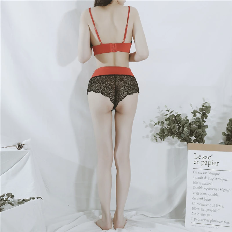 Комплект женского кружевного нижнего белья, бесшовный, из шелка, бю...