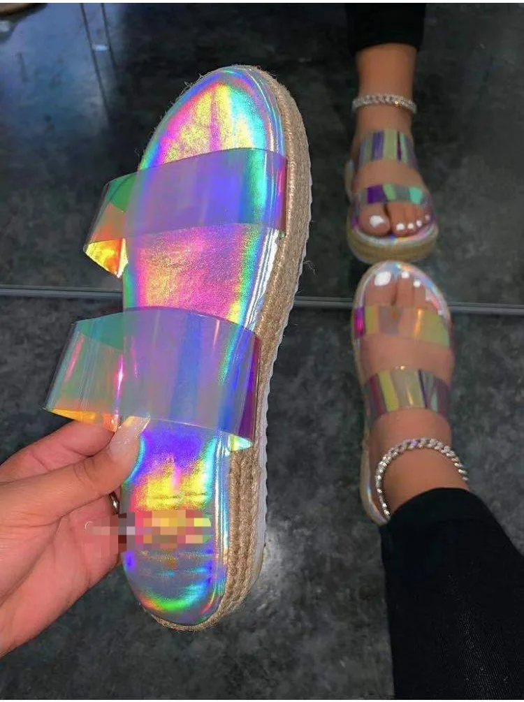 Шлепанцы женские с блестками, сандалии на высоком каблуке, танкетка...