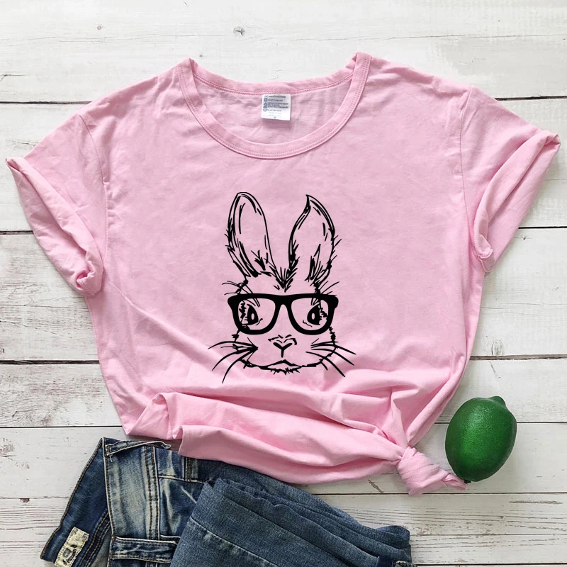 Футболка с изображением кролика с леопардовыми очками и цветным принтом, Повседневная футболка с графикой для хипстеров, футболка с кроликом, Милая женская футболка на День Пасхи, подарок