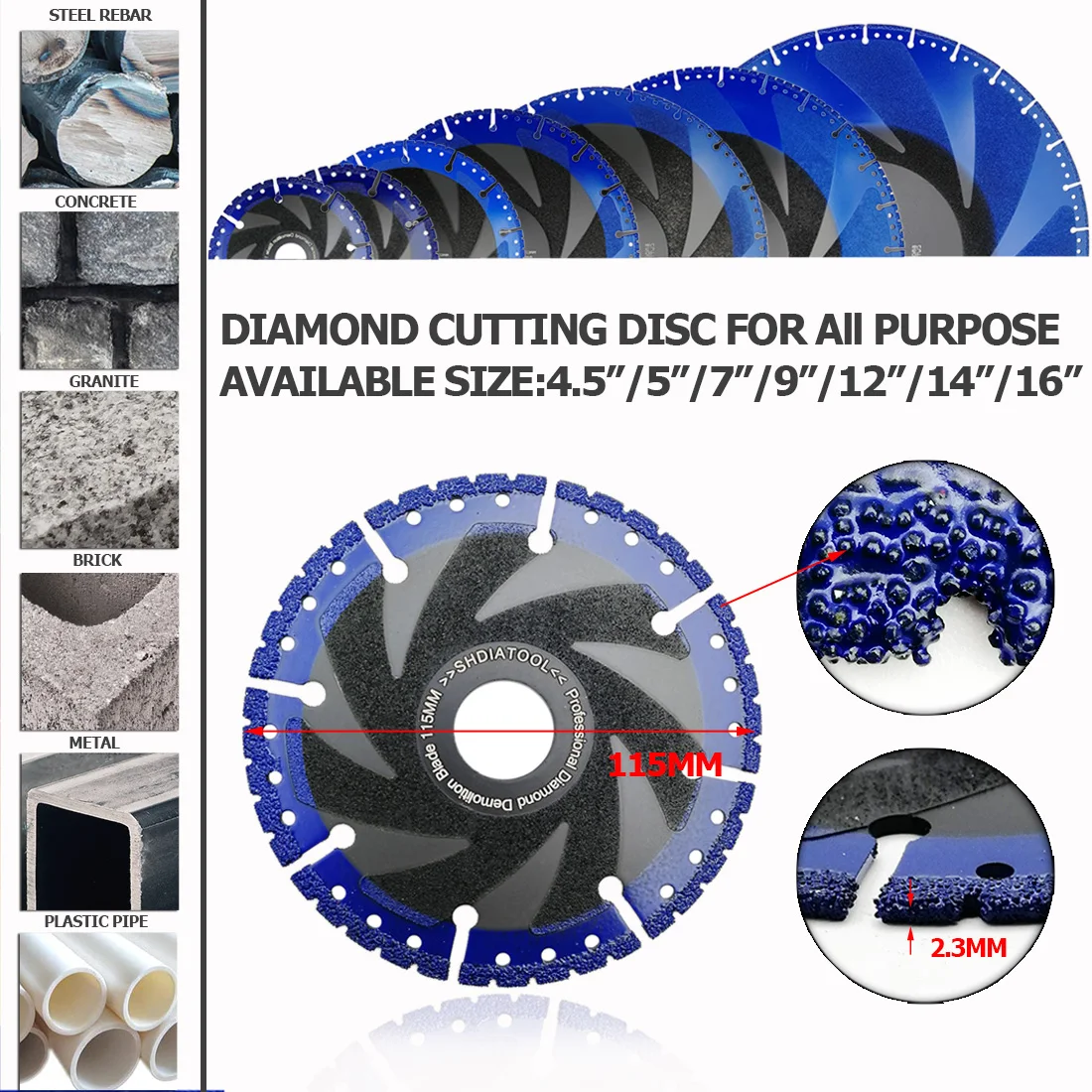 Вакуумные алмазные лезвия для всех целей, 2 шт., 350 ммСпецификация:Диаметр 350 мм/14 дюймовТолщина сегмента 3,2 ммОтверстие: 25,4 мм (1 дюйм) с отверстием для штифтаКоличество:2 штукиОсобенность:Используя технологию вакуумной пайки, высокая концентрация промышленных алмазных частиц премиум-класса постоянно паяется к краю стального сердечника, создавая небьющиеся и чрезвычайно термостойкие сегменты, которые могут быстро отрезать почти все материалы без водяного охлажденияРазработан для использования с одним лезвием для всех целей. Пожарные, спасатели, полицейские и подрядчики по сносуОбе стороны покрыты абразивным материалом, помогают повысить производительностьИспользуйте влажную или сухуюПрименение:Предназначен для резки жестких материалов, включая гранитный мрамор, алюминий, панели кузова автомобиля, чугун, медную трубу, гофрированную кровлю, гипсокартон, Трубы из ковкого железа, пожарную дверь, кладку, пластик, ПВХ, арматура, железобетон, стальной металл, штукатурка и многое другоеДругие доступные размеры: 4,5 дюйма/115 мм, 5 дюймов/125 мм, 7 дюймов/180 мм, 9 дюймов/230 мм, 12 дюймов/300 мм, 14 дюймов/350 мм, 16 "/400 ммПримечание: на этих товарах указан наш бренд. Если вам не нужно Название нашего бренда, пожалуйста, оставьте нам сообщение, мы можем отправить вам товары без бренда.Индивидуальный сервис: если вы заказываете 20 шт., мы можем отметить название вашего бренда на нашей продукции