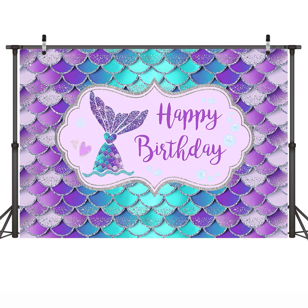 Русалки С Днем Рождения вечерние фон Настенный декор Радуга в виде рыбьей чешуи; Детский фон для фотосъемки на день рождения Подводное царство фотосессия