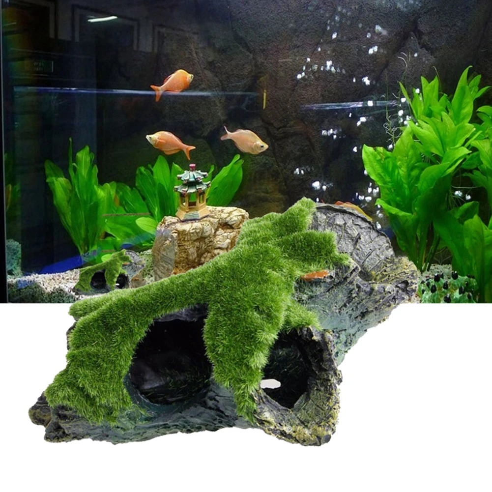 Искусственный пень с Мохом, украшение для аквариума, смола, обзор гор, рыба, игровое дерево, домик с отверстиями, пещера, декор для аквариума