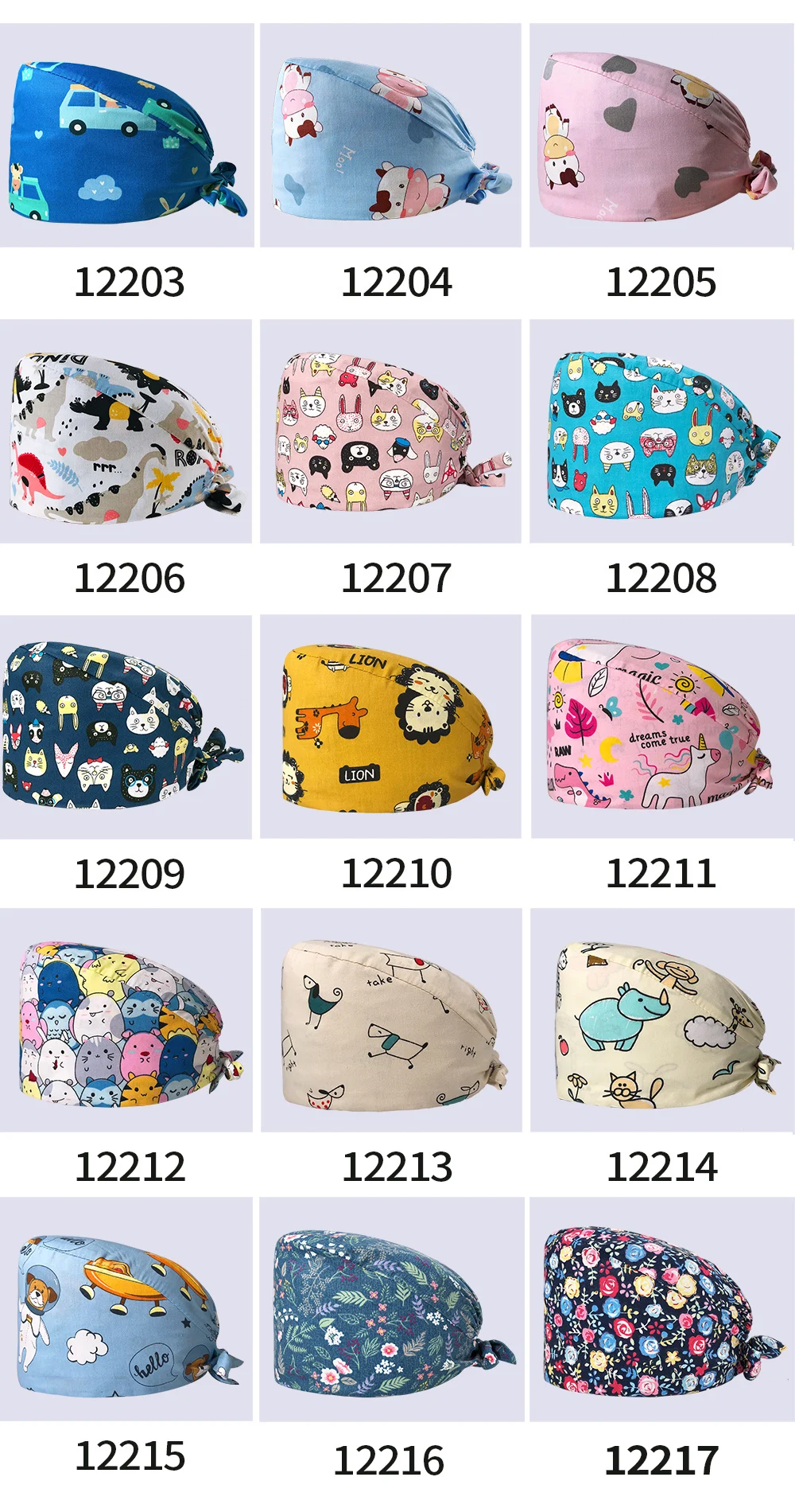 100% хлопковая анестезирующая хирургическая шапка с мультяшным принтом, шапка для стоматологических клиник, врачей, медсестер, рабочая шапка для женщин и мужчин, шапка для хирургической медсестры