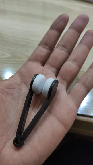 La pinza ya tiene un ángulo fijo de abertura, no debes forzarla abrir más o se quebrará si pones fuerza . Perfectamente entra en el lente y limpia bien . La esponja es de buen material el tamaño muy práctico un accesorio para los que usamos lentes de graduación. Recomiendo al vendedor y así producto que es Súper Excelente.