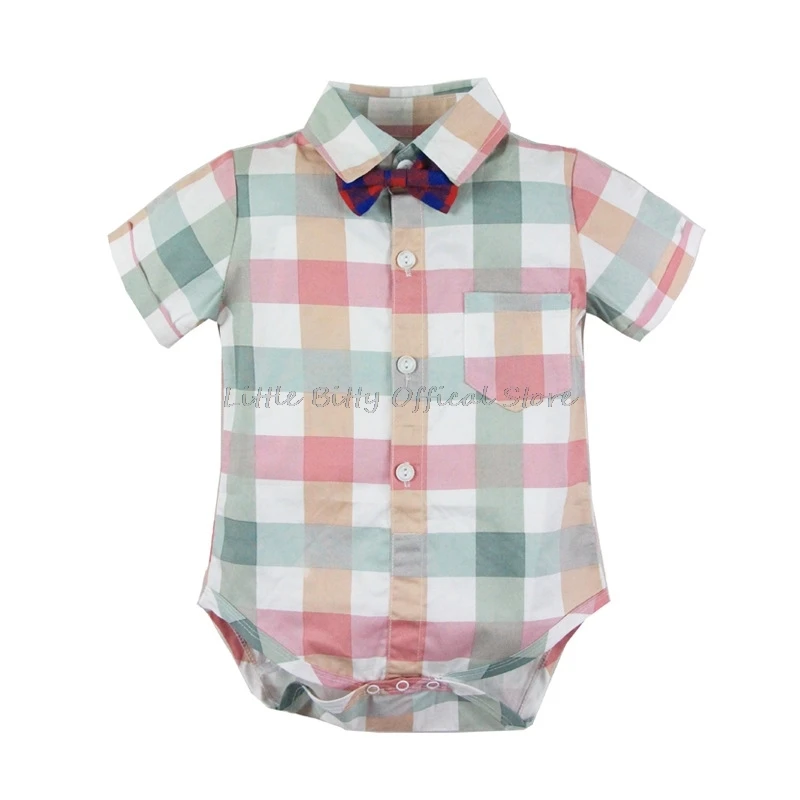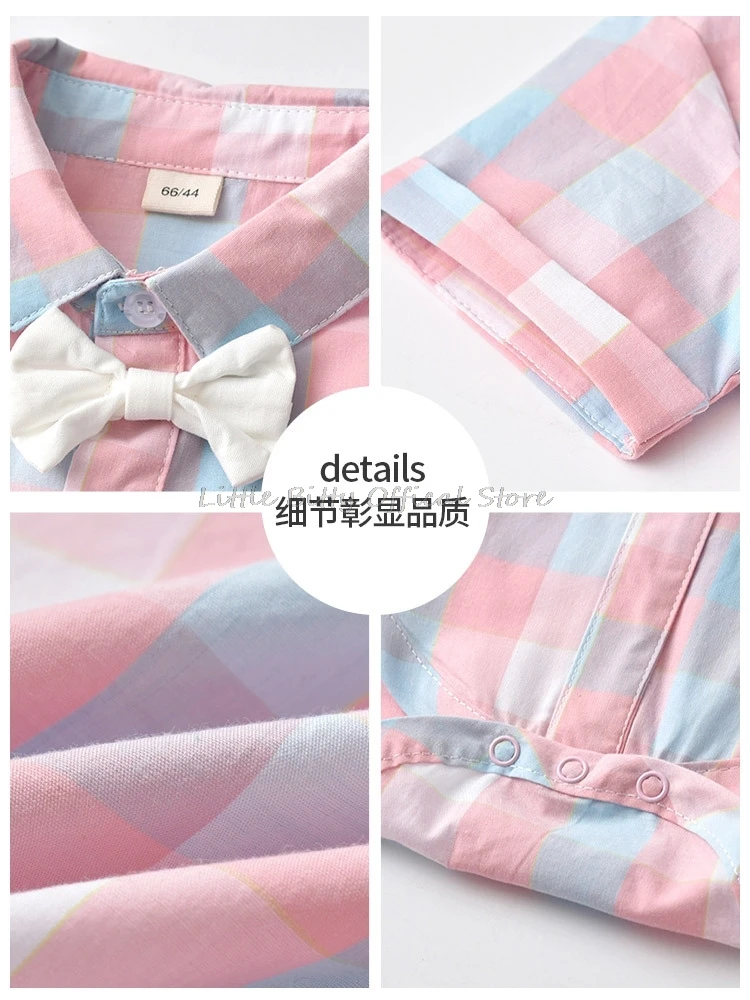 Клетчатая рубашка с бантом для маленьких мальчиков, одежда для ново...