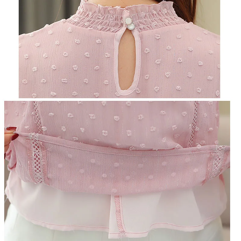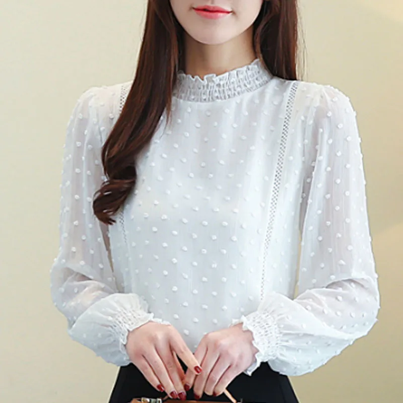 Модные, элегантные, со стоячим воротом Новое 2021 женские шифоновые блузки с длинным рукавом Повседневные женские топы с вышивкой женская одежда 5401 50