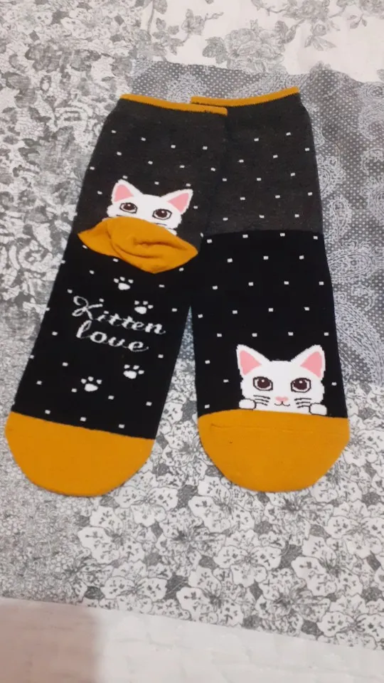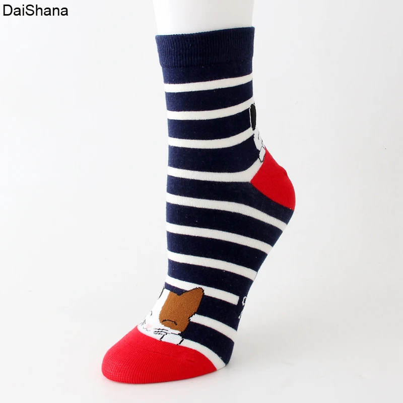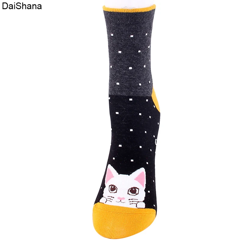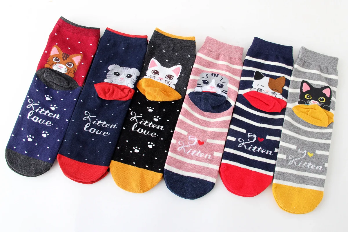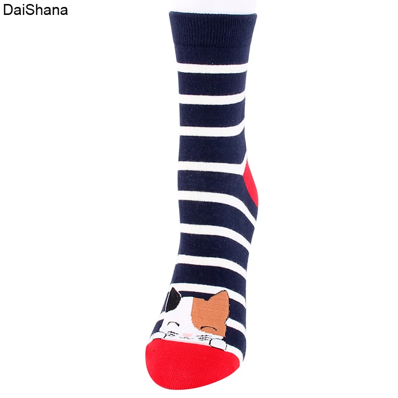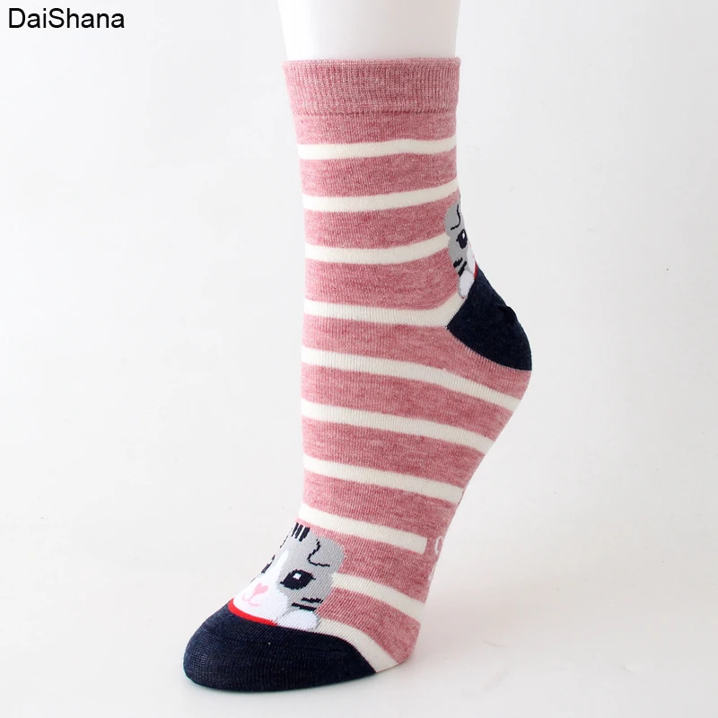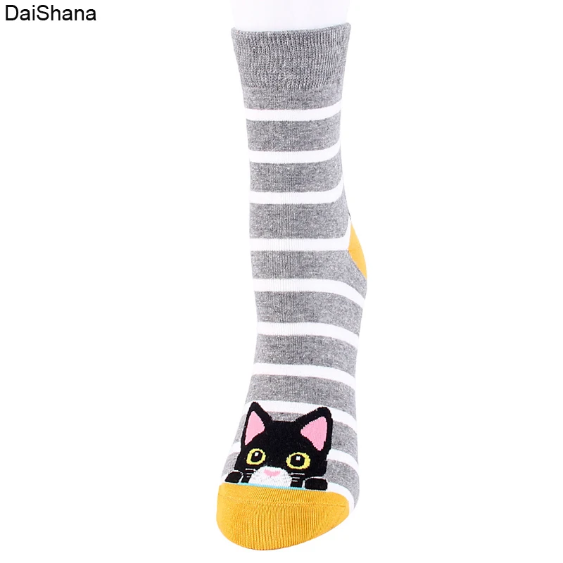 Носки женские хлопковые в полоску, модные повседневные с принтом кота, Харадзюку, 1 пара