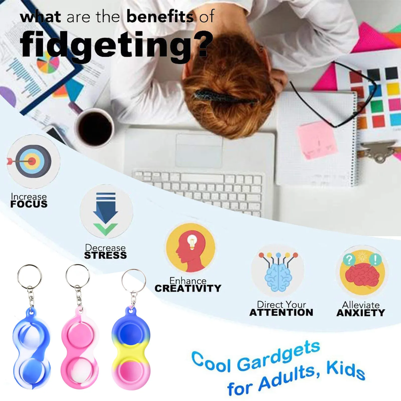 Снимает стресс и фокусируется: отлично подходит для недостаточного внимания/гиперактивности, аутизма или беспокойства, идеально подходит для студентов, офисных работников и повседневного возгорания