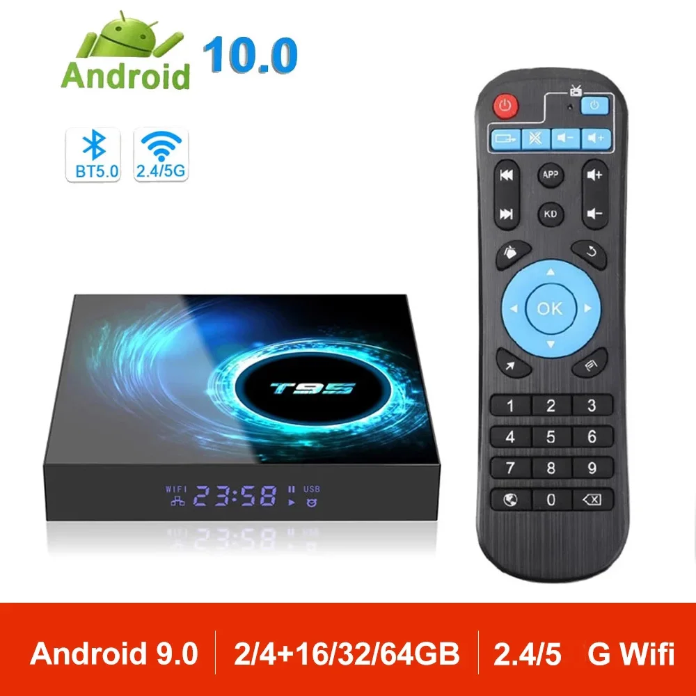 2020 T95 Смарт ТВ приставка Android 10,0 4G 64 Гб оперативной памяти, 32 Гб встроенной памяти, 6K Youtube Mediaspeler 2,4G 5G Wi-Fi Tv Box Android Декодер каналов кабельного телевидения-топ, 2 Гб оперативной памяти, 16 Гб встроенной памяти, Декодер каналов кабельного телевидения