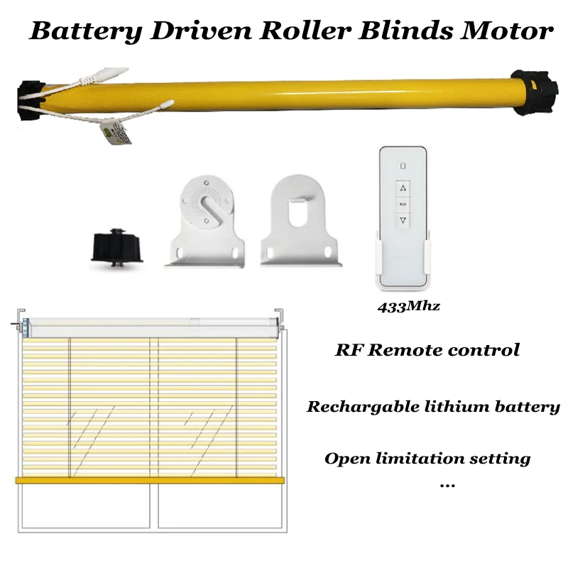 Трубчатый двигатель с питанием от литиевого аккумулятора, 433 МГц, пульт дистанционного управления, роликовые жалюзи, двигатель, электрический комплект, трубка с открытым концом 38 мм AM25
