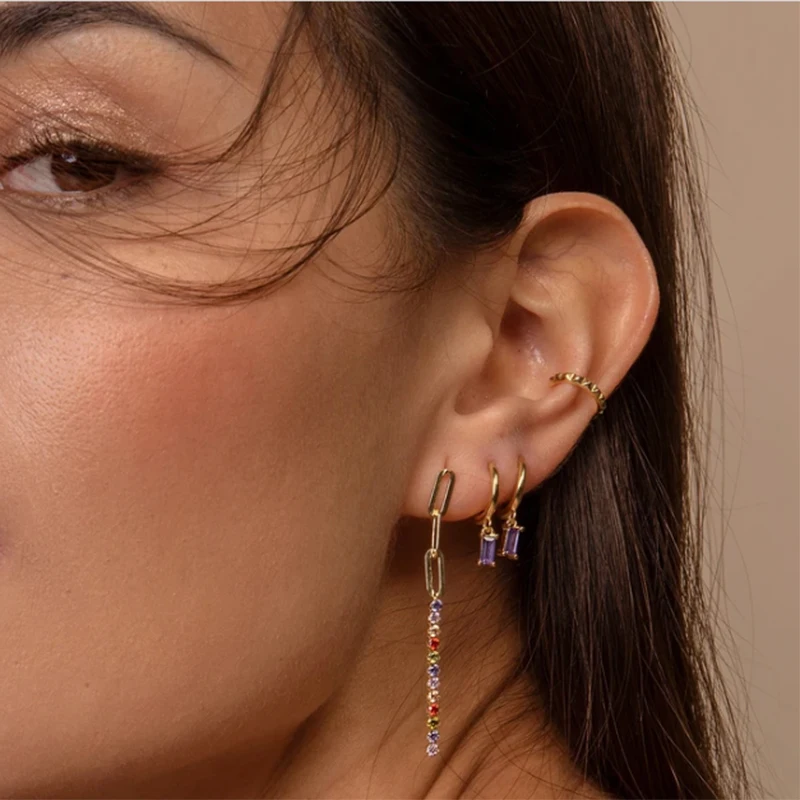 CCFJOYAS 925 стерлингового серебра прямоугольные серьги-кольца с цирконом белыйфиолетовыйсинийнежно-розовый и красный цвета, для женщин, серьги, модное ювелирное изделие
