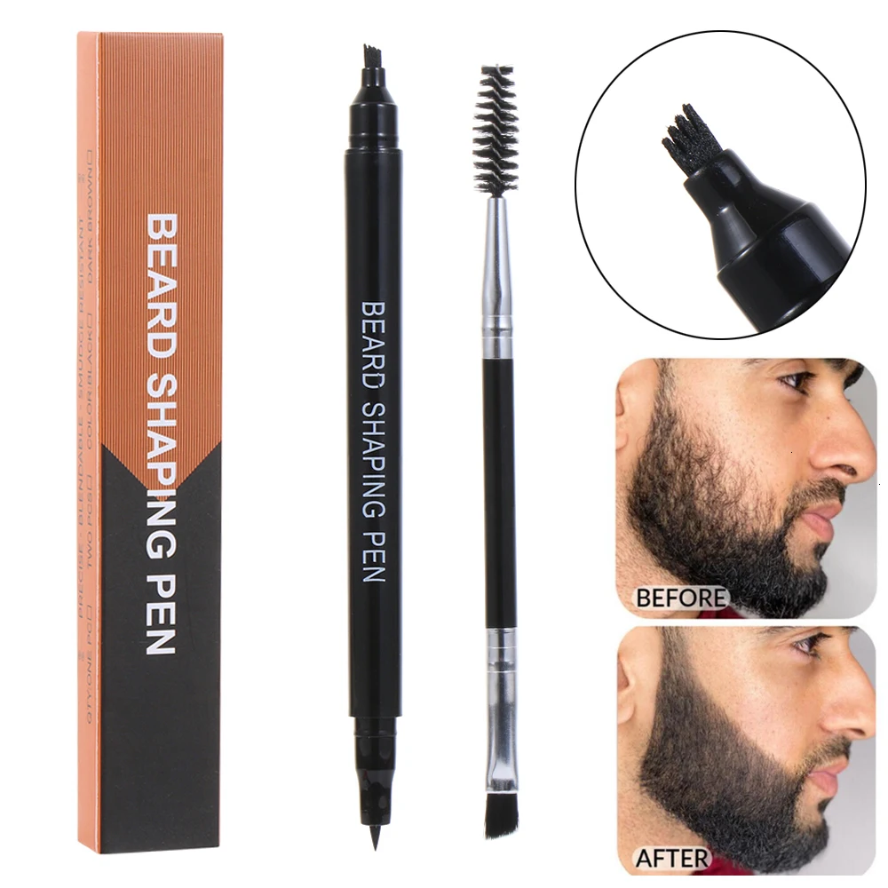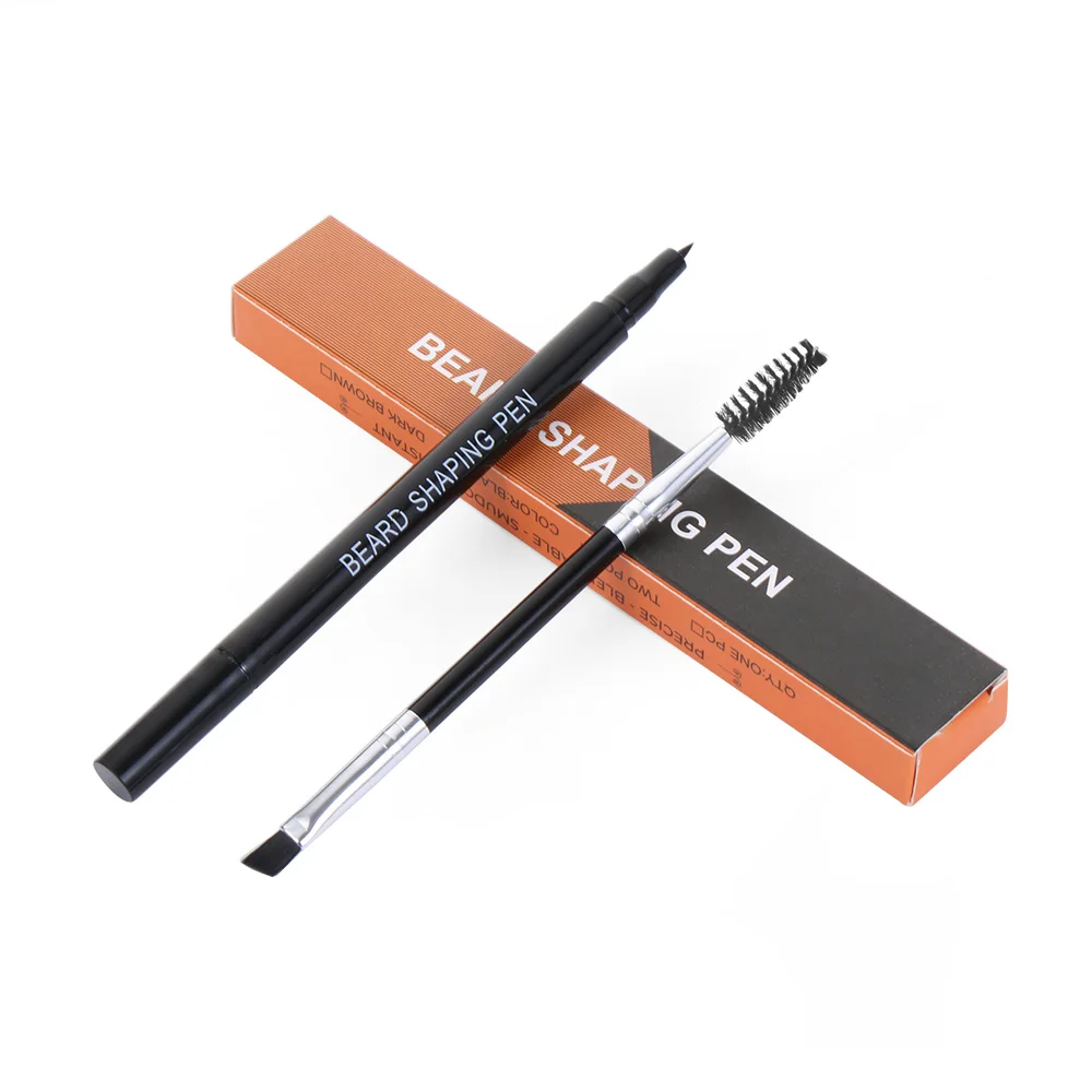 2 в 1 двухголовый карандаш для бороды, наполнитель для мужчин, 4 вилки, наконечник, наполнитель, ручка с щеткой, водонепроницаемый, пот и размазывание, натуральный, полный туалет