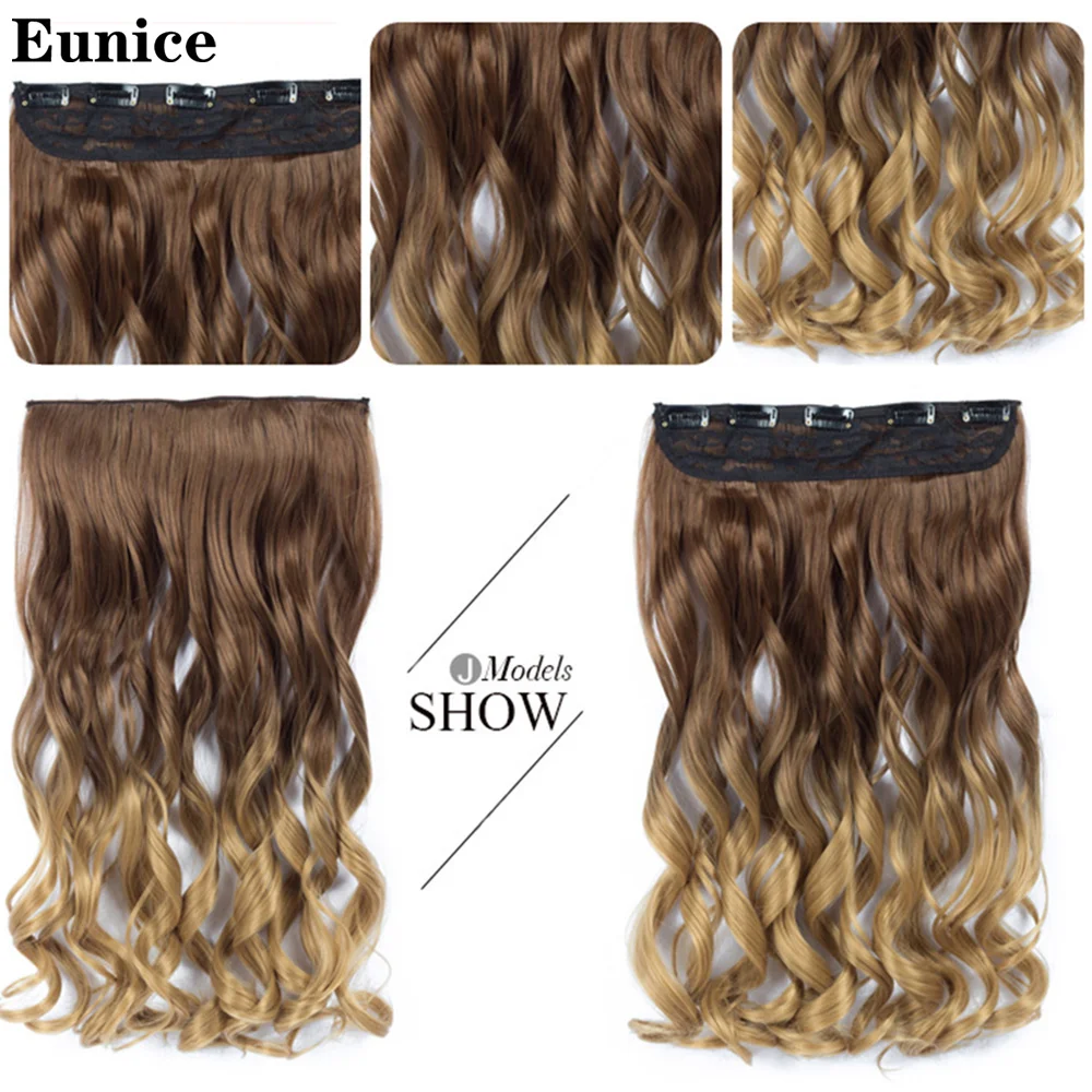 Eunice 22 дюйма длинные волнистые синтетические 5 клипсов в одной части волос Плетение волос для женщин клип-в наращивание волос серый коричневый блонд